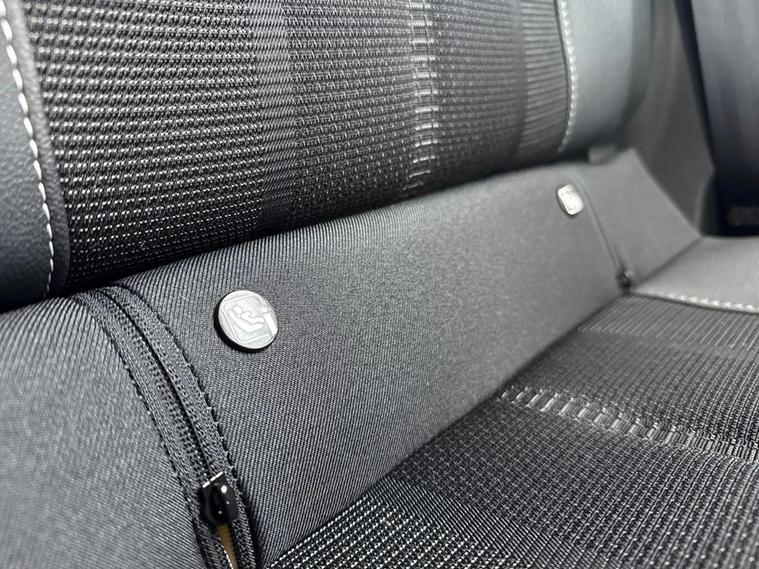 - Fabric/leather upholstery with jet black fabric side bolsters