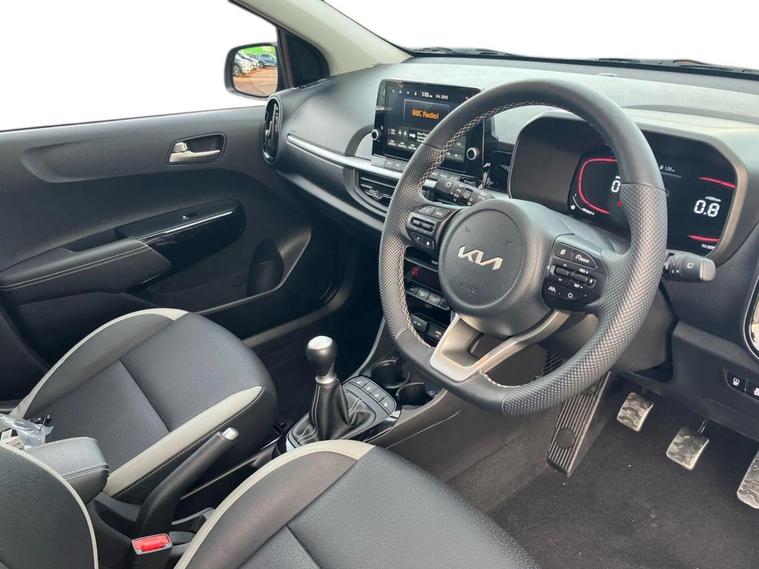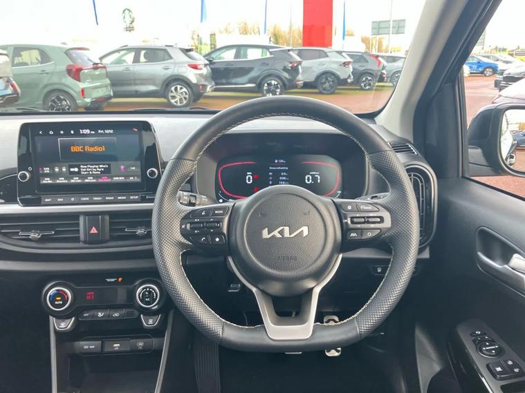 This 2025 Kia Picanto GT Line S boasts Kia warranty until January 2032, offering excellent peace of mind for the next owner. This stylish hatchback is equipped with a responsive 1.2 litre petrol engine and meets Euro 6 emission standards. The GT Line S trim level ensures a premium feel, and you'll appreciate the convenience of automatic air conditioning with climate control, a reversing camera system, and rear parking sensors to make manoeuvring effortless. Further enhancing your driving experience, this Picanto features striking LED headlights for improved visibility and heated front seats for comfort during colder months. Its low insurance group rating is a significant advantage, indicating that running costs are likely to be more affordable compared to similar vehicles. This combination of practical features, modern technology, and cost effective ownership makes this Kia Picanto a compelling choice.