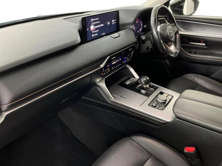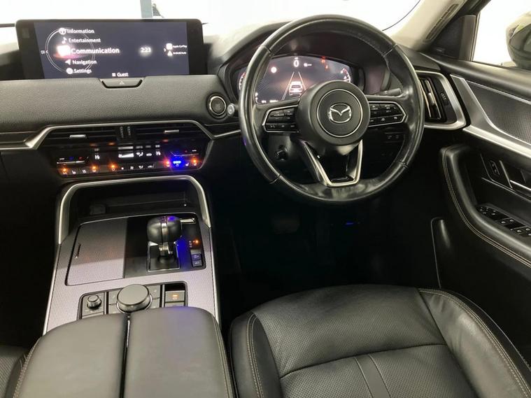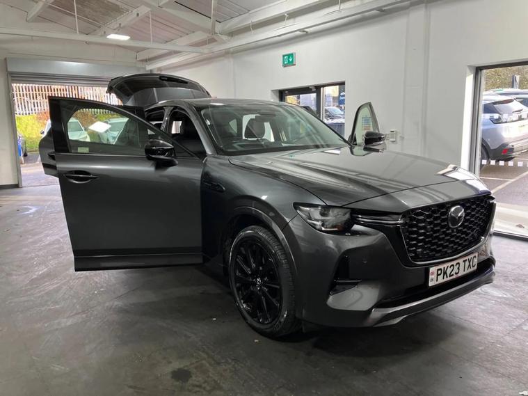 This 2023 Mazda CX-60 e-SKYACTIV D Homura presents an exceptional opportunity with its remarkably low mileage of just 18, 641 miles for its age. This Four Wheel Drive model, featuring a 3.3L Diesel Hybrid Engine and meeting Euro 6 emissions standards, offers a sophisticated driving experience. It comes equipped with an electric panoramic sunroof, front and rear parking sensors for effortless manoeuvring, and smart keyless entry for convenience. Safety is enhanced with Blind Spot Assist, and the Mazda Driver Personalisation System allows for a tailored driving position with memory seats. The MOT is valid until March 2026, providing peace of mind. The CX-60 Homura stands out with its impressive fuel economy, achieving a highlight of 54 mpg, which is better than many comparable vehicles. Its low CO2 emissions are also a significant advantage, contributing to a more environmentally conscious drive. Furthermore, this model benefits from a low insurance group, making it a cost effective choice. The generous boot space ensures practicality for all your needs, and with a towing weight of 2500 kg, it is well equipped for various tasks.