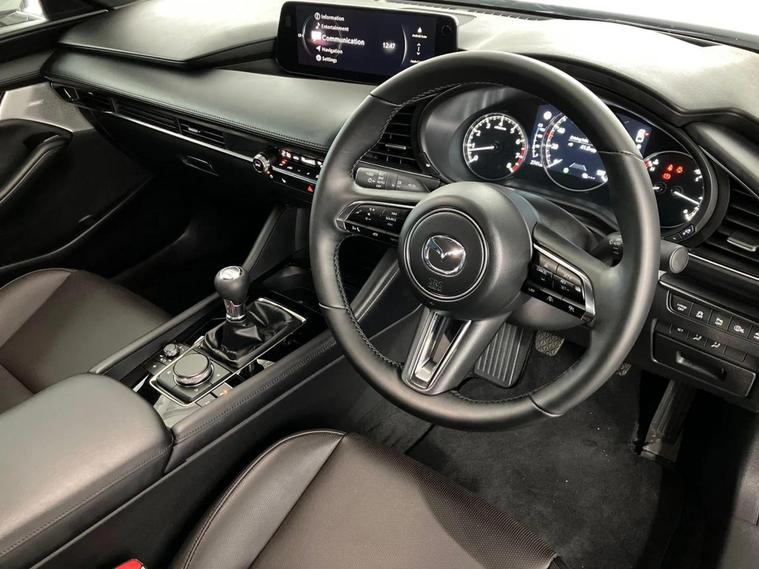 This 2025 Mazda3 e-SKYACTIV-G Takumi offers excellent peace of mind with its MOT valid until September 2028. This stylish hatchback is equipped with a responsive 2.5L petrol engine, meeting Euro 6 emission standards. Inside, you'll find advanced technology such as Mazda Radar Cruise Control, which includes adaptive cruise control, and Blind Spot Monitoring with Rear Cross Traffic Alert, further enhanced by Blind Spot Assistance. The convenience of Smart Keyless Entry makes accessing your vehicle effortless. The Mazda3 Takumi stands out with its impressive acceleration, reaching 0-62mph in just 9.5 seconds, demonstrating its dynamic performance. This model also benefits from a low insurance group, making it an economical choice for many drivers. Furthermore, you'll appreciate the generous boot space, offering ample room for shopping or luggage. These features collectively indicate that this Mazda3 provides a superior driving experience compared to other vehicles in its class.