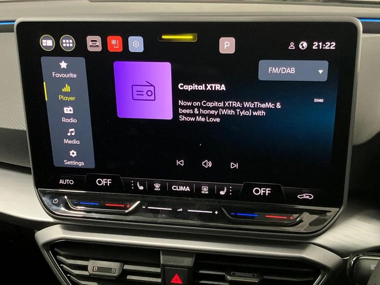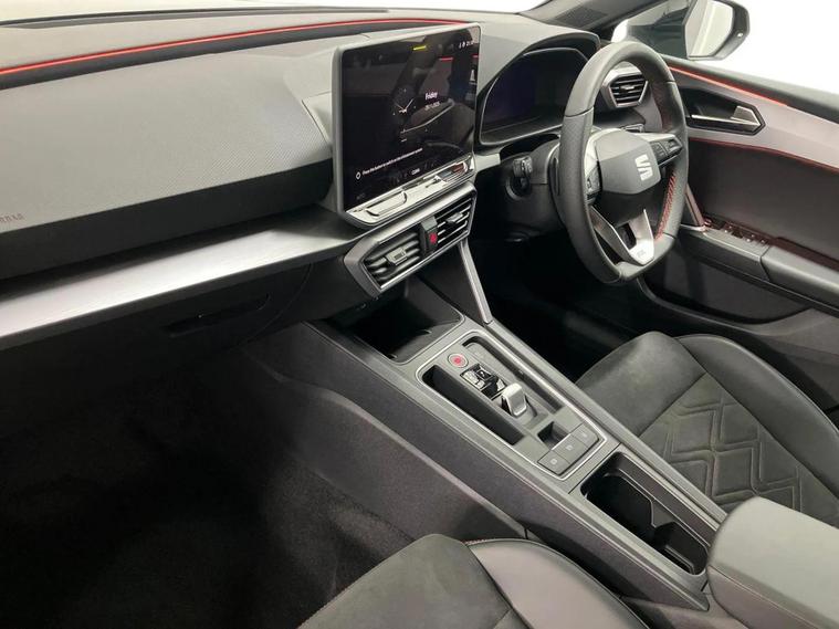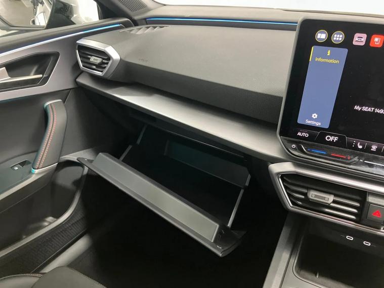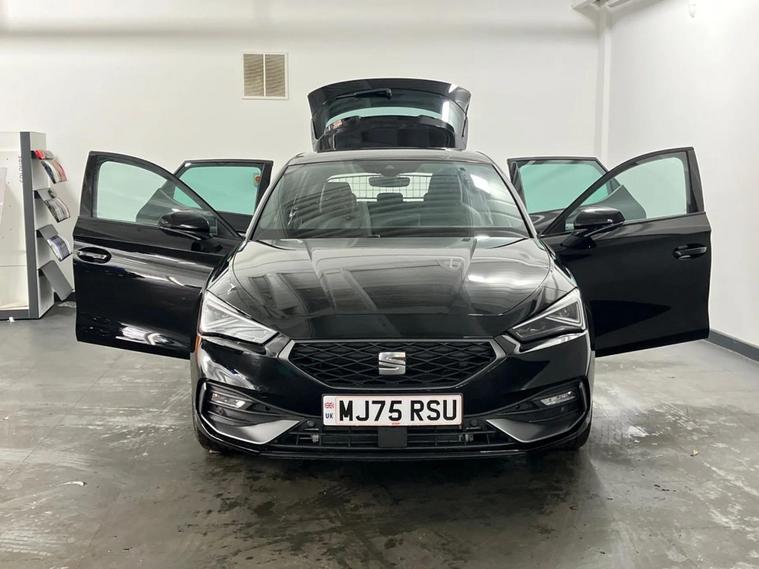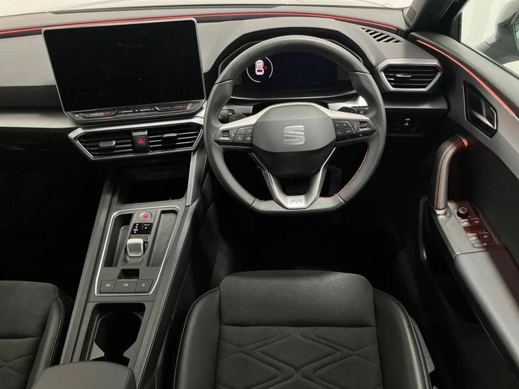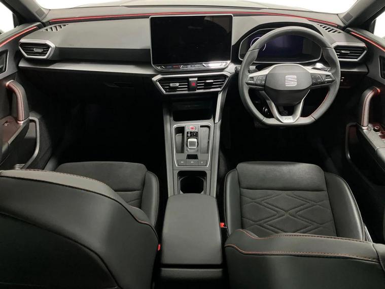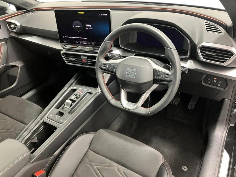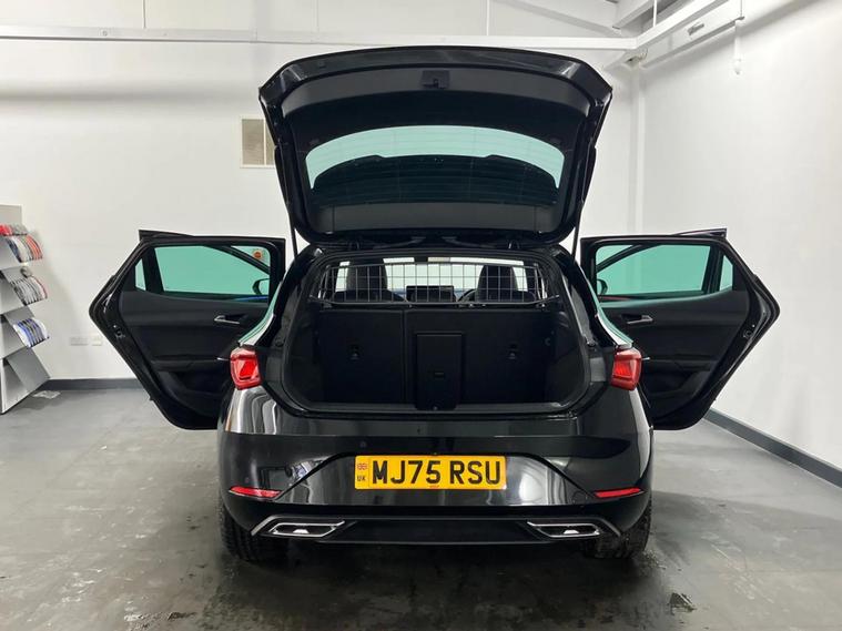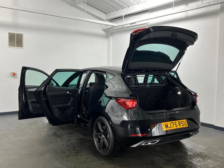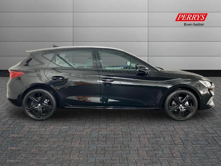 The SEAT Leon FR Black Edition features 18" black alloy wheels, a panoramic sunroof, black roof spoiler, side skirts, and mirror housings. Inside, a digital cockpit and keyless entry elevate your driving experience. Price advertised is using the SEAT Cash incentive offer, this is not able to be used in conjunction with finance offers such as PCP or 0% HP. For a quote on PCP or 0% hire purchase please call.