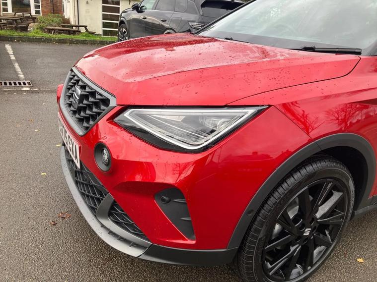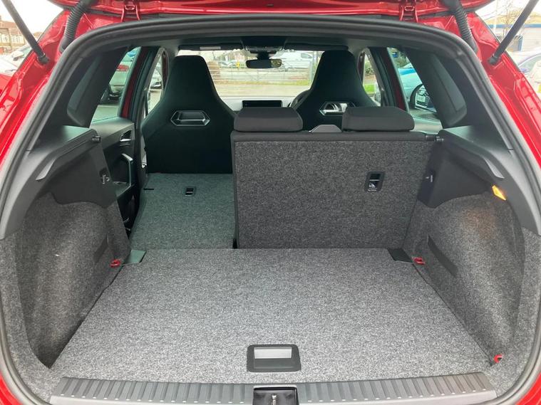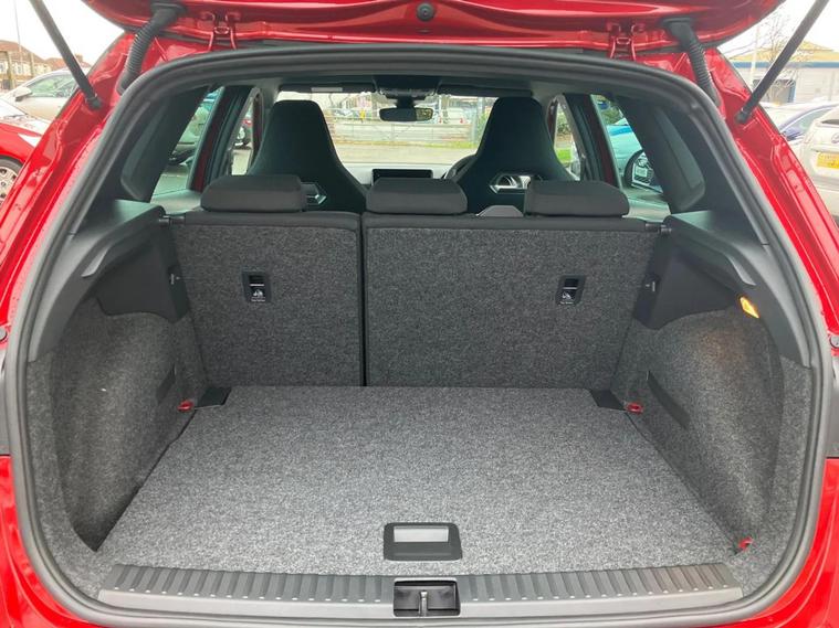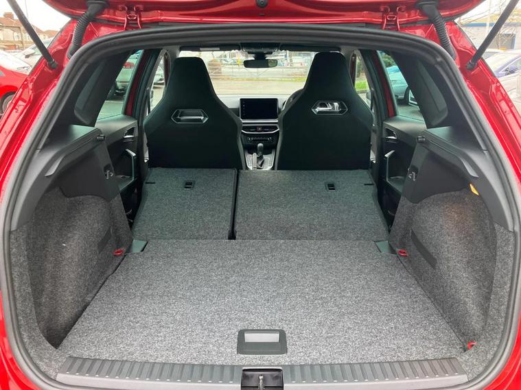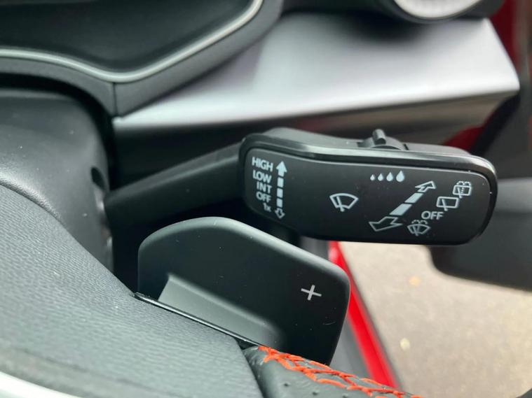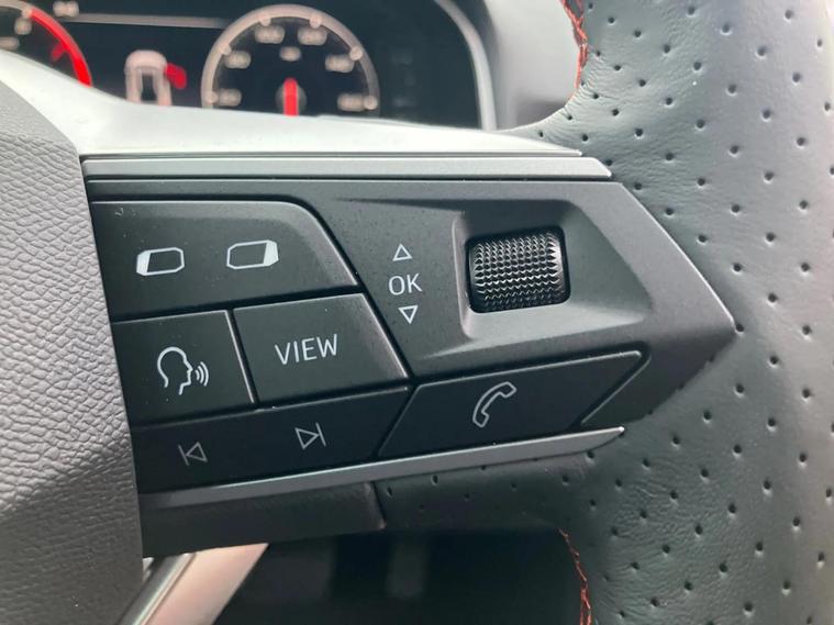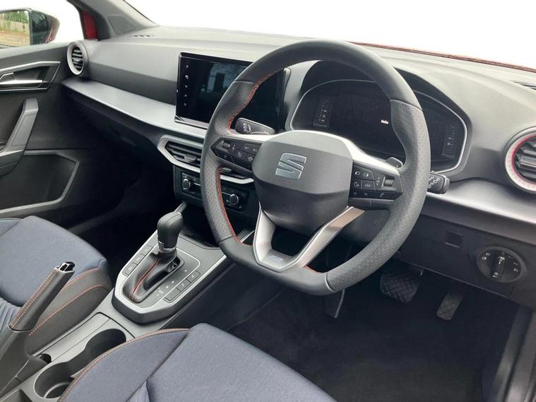 - Perforated flat bottomed leather steering wheel/gear knob/handbrake with red stitching and FR logo