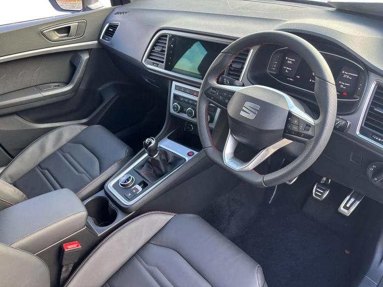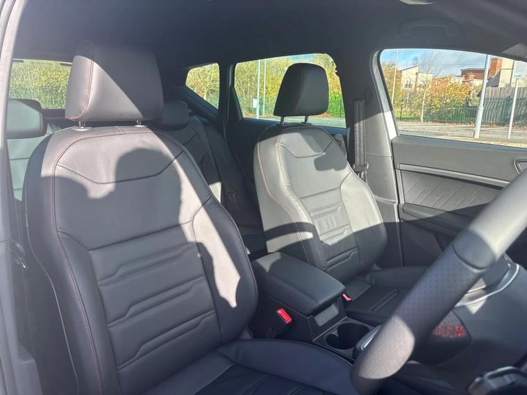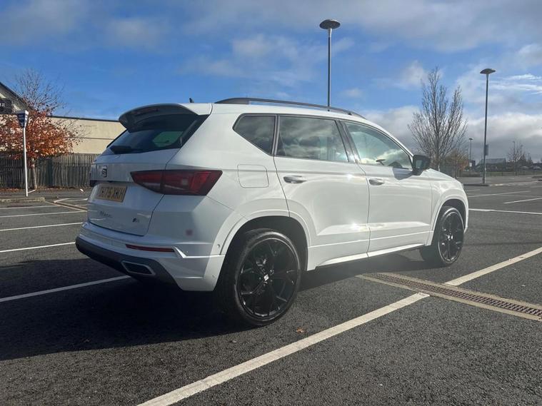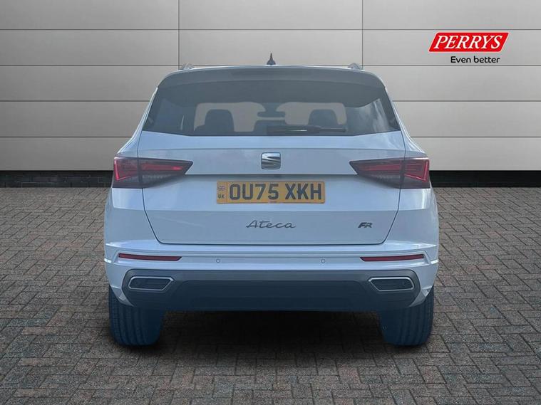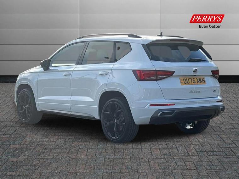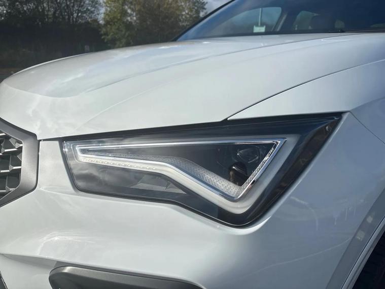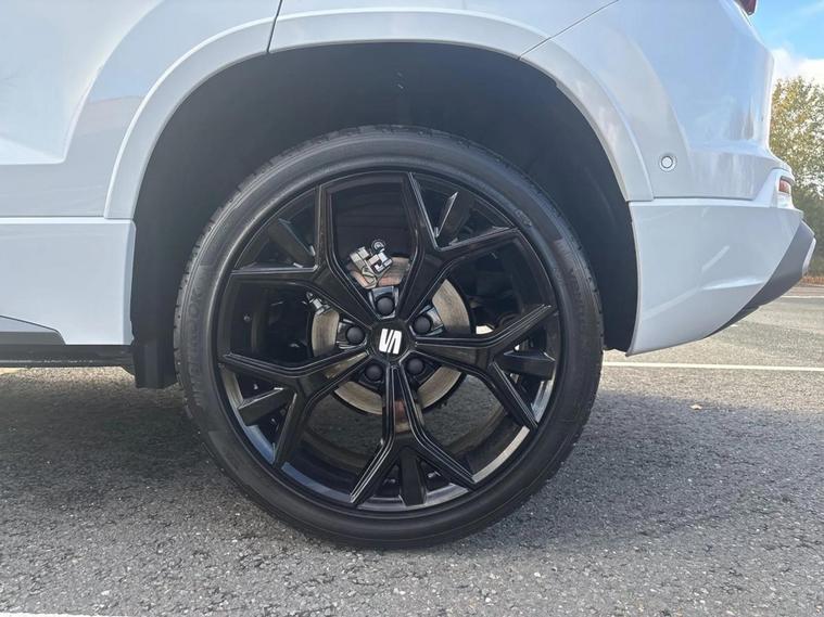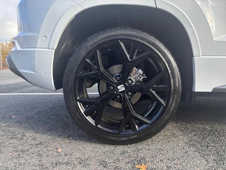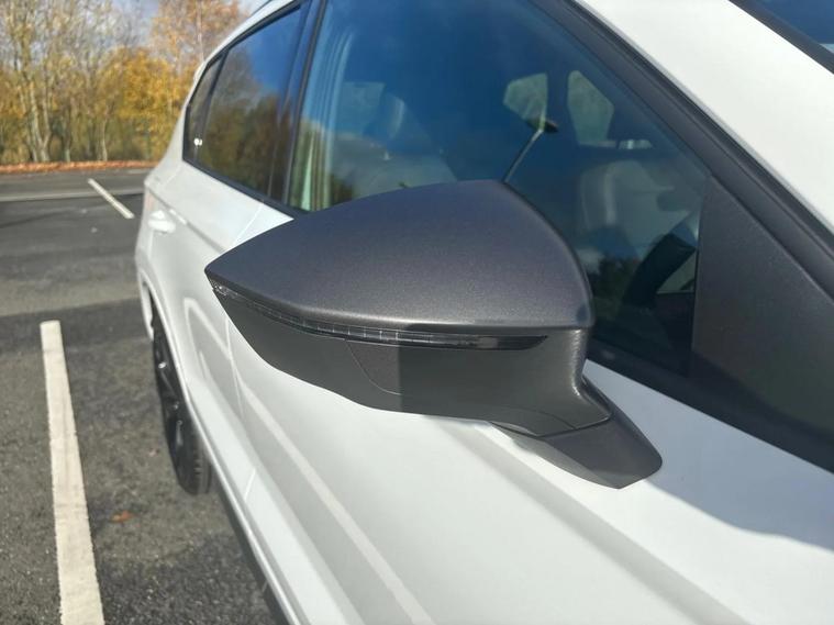 This 2025 SEAT Ateca TSI EVO FR Black Edition presents an exceptional opportunity with an incredibly low mileage of just 10 miles, making it virtually new. This Euro 6 compliant 1.5 litre petrol model boasts an FR Black Edition trim and comes with an MOT valid until September 2028, offering peace of mind. Inside, you'll find a host of convenient features including keyless entry, wireless phone charging, and dual zone climate control. The LED headlamps with lens and LED front fog lamps with cornering function ensure excellent visibility, while the heated front seats provide added comfort. The SEAT Ateca TSI EVO FR Black Edition offers impressive performance, accelerating from 0 to 62mph in just 9.0 seconds, demonstrating its dynamic capability. This acceleration figure is notably quicker than many other vehicles in its class. Furthermore, the generous boot space ensures practicality for all your needs, highlighting its versatility compared to similar models.