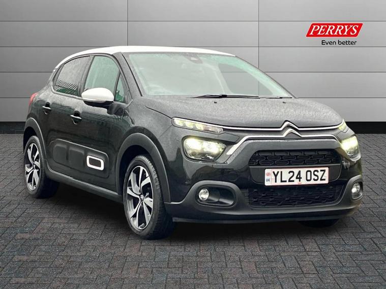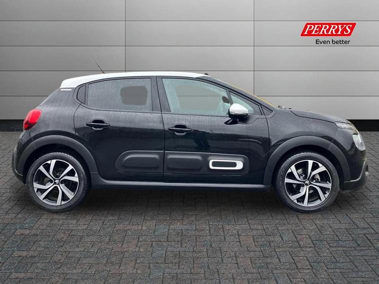 PCP and HP financing solutions available on this car Don't hesitate to get in touch and we can tailor a personalised quote for you, No admin fees at Perrys Huddersfield :-), Metallic paint - Obsidian black body/Polar white roof, LED running lights, LED headlights, Front fog lights, Diamond cut alloy wheels, Airbumps, Privacy glass, Parking sensors, Rear park camera, Remote central locking, 2 keys, Electric windows front and rear, ISOFIX, Auto lights, Auto wipers, Auto dimming rear view mirror, Cruise control, Speed limiter, Trip computer, Lane departure warning, Forward collision alert, Half leather seats, Climate control, DAB digital radio, Bluetooth connectivity for phone and audio streaming, USB connectivity, Apple CarPlay, Android Auto, Satellite navigation, Great performance, 110 BHP, Great fuel economy, Latest EURO 6 emission compliant engine, ULEZ and CAZ charge exempt, Biggest choice of C3 in Huddersfield and surrounding areas, Low insurance grouping, Part exchange welcome, Don't live local? we can value your car over the phone to make your visit with us a 'one stop shop' - drive to us in your old car and drive away in your new one :-) ALL of our cars advertised are here with us - unlike internet based platforms :-) we can go through everything on the car with you over the phone or even over video call if you wish, all before setting off from home, to arrange a video call or If you would like some higher quality photos of this car sending to you so you can see the car...