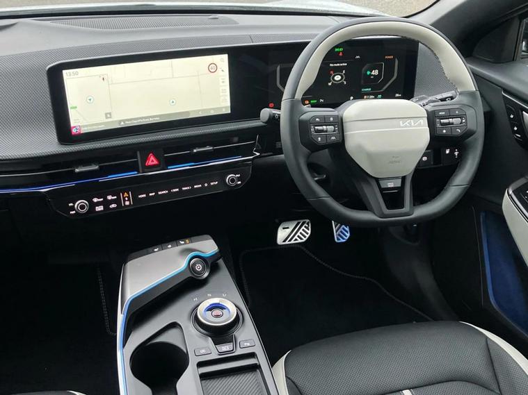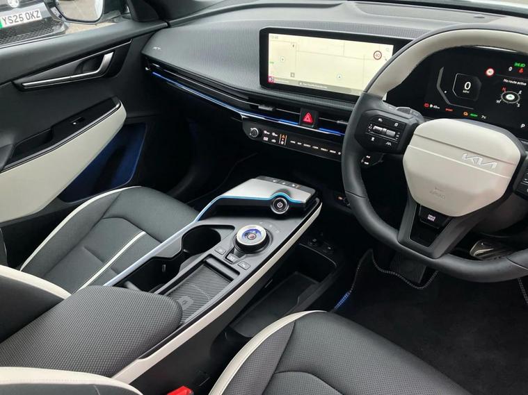 This 2025 Kia EV6 GT Line presents an exceptional opportunity with an incredibly low mileage of just 38 miles, making it virtually as new. As an electric vehicle, it boasts a substantial 84 kWh battery offering a maximum range of 361 miles, perfect for longer journeys. This GT Line model comes equipped with a heated steering wheel and heated front seats for enhanced comfort, alongside automatic air conditioning to maintain the ideal cabin temperature. Practicality is also a key consideration, with a wireless mobile phone charger and dual LED headlights featuring adaptive driving beam technology for improved visibility. Furthermore, the MOT is valid until September 2028, providing peace of mind. The Kia EV6 GT Line stands out with its impressive battery range of 361 miles, significantly exceeding many other electric vehicles on the market. Charging is both convenient and rapid; while a full charge at home using a 7kW charger takes approximately 38 hours and 31 minutes, you can achieve an 80% charge from empty in just 20 minutes at a compatible public charging station. This EV6 also offers generous boot space, adding to its practicality for everyday use and travel. The combination of its advanced features, extensive range, and minimal mileage makes this Kia EV6 GT Line a truly compelling choice.