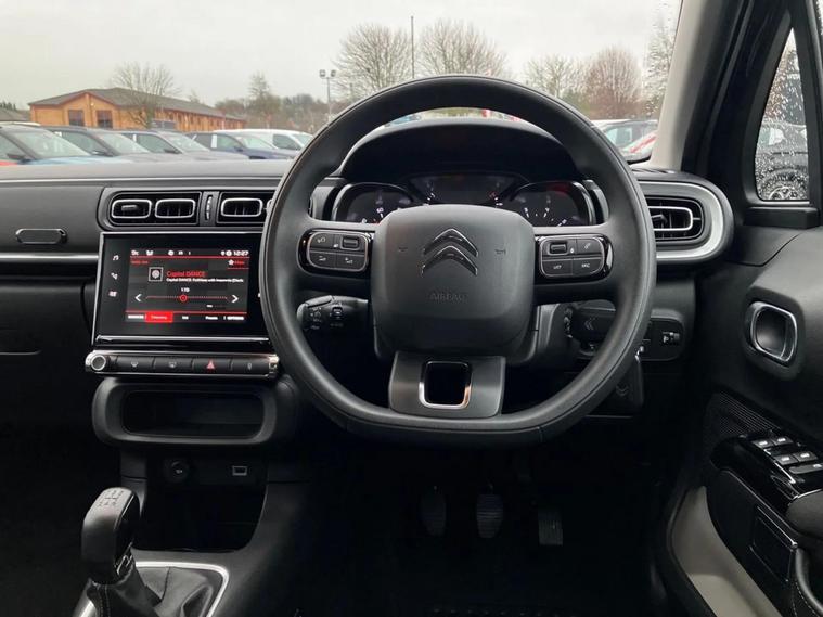 This 2023 Citroen C3 C Series Edition offers excellent peace of mind with its MOT valid until March 2026. This stylish hatchback is equipped with a responsive 1.2L petrol engine, meeting Euro 6 emissions standards. For convenience and safety, it features rear parking sensors and a reversing camera, making manoeuvring in tight spaces effortless. The C Series Edition also boasts bright LED headlights for improved visibility and automatic air conditioning to ensure a comfortable cabin temperature in all conditions. The Citroen C3 C Series Edition is designed to be economical to run. It achieves an impressive fuel economy of 54 miles per gallon, which indicates it is more efficient than many other similar vehicles. Furthermore, its low insurance group rating suggests that running costs will be kept to a minimum. The vehicle also benefits from low CO2 emissions, highlighting its environmentally conscious design compared to other cars in its class.