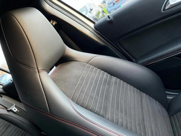 2018 Mercedes Benz A200d AMG Line Premium Plus, featuring a Euro 6 compliant 2.1L turbo diesel engine. The AMG Line trim enhances its sporty appeal, while the Premium Plus package includes a desirable panoramic sliding sunroof, offering an open and airy cabin experience. This A Class is designed to impress with its efficiency and performance. It achieves an outstanding 71 miles per gallon, making it a very economical choice for daily driving. Its low CO2 emissions further contribute to its cost effectiveness and environmental consideration. The acceleration from 0 to 62 miles per hour in just 8.8 seconds demonstrates its responsive power. Furthermore, its low insurance group rating and generous boot space make it a practical and appealing option compared to similar vehicles.