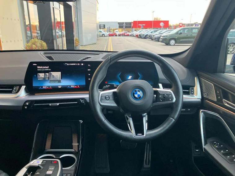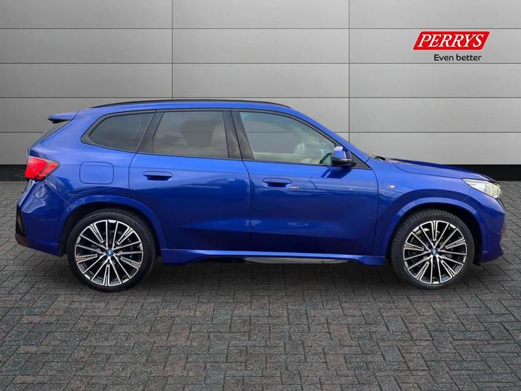 This 2023 BMW iX1 M Sport is a superb example, having had only one owner since new. This electric vehicle boasts a Four Wheel Drive drivetrain and a substantial 67 kWh battery, offering a maximum range of 272 miles. For convenience, a full charge at home using a 7kW charger takes approximately 9 hours and 10 minutes, while rapid public charging can replenish the battery from empty to 80% in just 32 minutes. It also benefits from the remainder of it's BMW factory warranty, providing peace of mind. Experience exhilarating performance with the iX1's impressive 0-62mph acceleration in a mere 5.6 seconds, a figure that sets it apart from many other vehicles in its class. This M Sport variant also features a generously sized boot, making it exceptionally practical for everyday use and longer journeys. The combination of its advanced electric powertrain, dynamic M Sport styling, and outstanding practicality makes this BMW iX1 a compelling choice for those seeking a premium electric SUV.