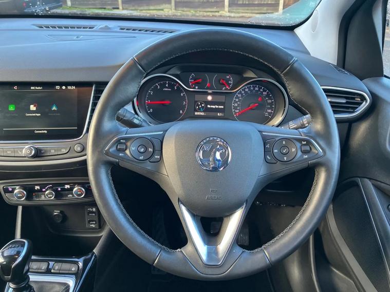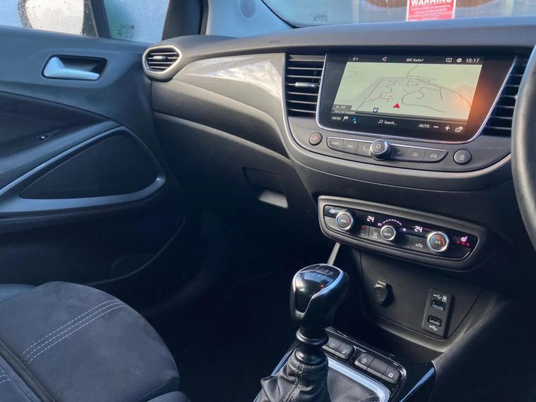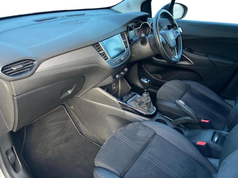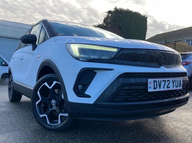 Vauxhall Crossland Ultimate 1.2Turbo 6 Speed Manual, Finished in Brilliant White Jade with 18" Bi-Colour Diamond Cut Alloys, 2 Keys, Full Service History: 1st 28/11/2023 at 855 miles, 2nd 14/11/2024 at 14035 miles. Features include Sat Nav, DAB Radio, Heated Front Seats, Heated Steering Wheel, Rear Parking Camera, Automatic Lights and Wipers. You can also reserve the vehicle for a fully refundable £99. A £149 administration fee is applicable to the advertised price upon purchase of this vehicle. Refer to our terms and conditions for details.