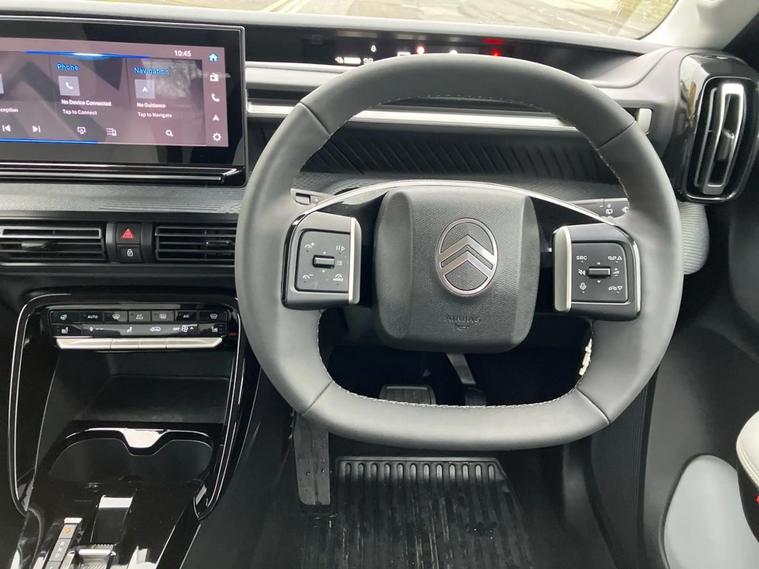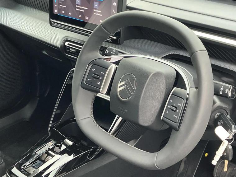 - Leather effect steering wheel with gloss black and chrome elements and integrated audio/telephone/cruise control/speed limit controls
