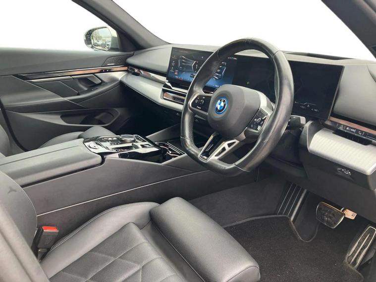 This 2024 BMW i5 40 M Sport Pro offers exceptional peace of mind with its MOT valid until April 2027. As an all electric vehicle, it boasts a substantial 84 kWh battery, providing a maximum range of 338 miles when new. This impressive electric saloon also has comfort pack, tech pack, comfort access, and Veganza quilted leather. Experience the future of driving with the BMW i5. Its electric powertrain delivers a smooth and responsive performance, complemented by a generous boot space perfect for all your needs. Charging is flexible, with a full charge at home taking approximately 12 hours and 30 minutes using a 7kW charger, while rapid public charging can take you from empty to 80% in just 34 minutes. These capabilities highlight how the i5 offers a superior electric driving experience compared to other vehicles in its class.