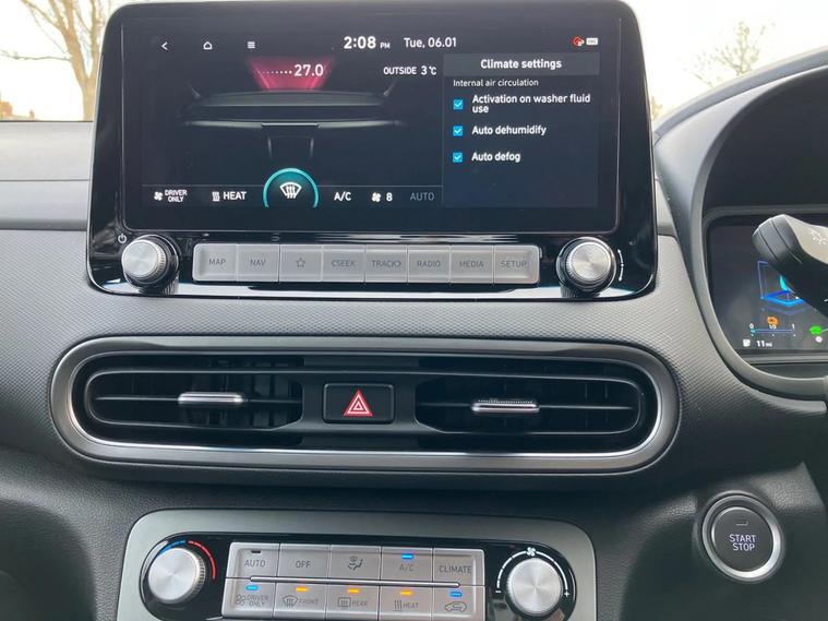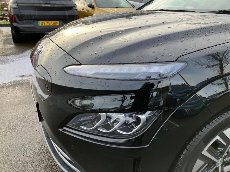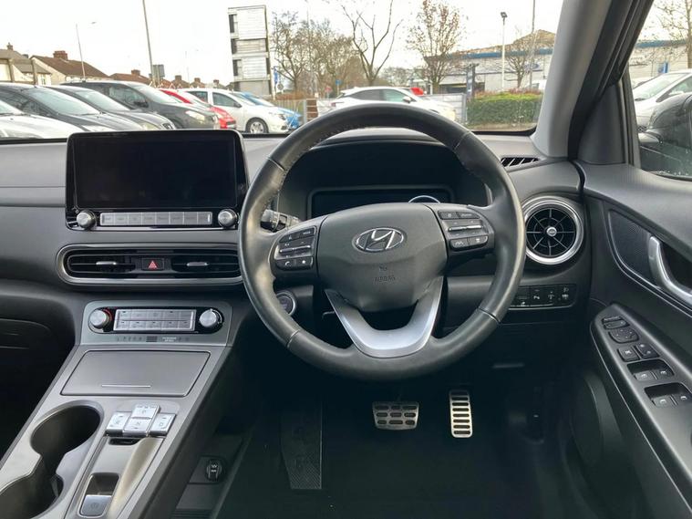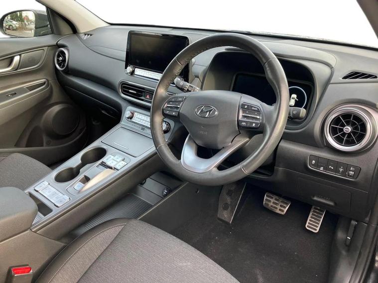 This 2022 Hyundai KONA Premium Electric boasts exceptionally low mileage for its age. As an electric model, it offers a battery total capacity of 42 kWh, Recharging at home with a 7kW charger takes approximately 6 hours and 40 minutes, while rapid public charging can replenish the battery from empty to 80% in as little as 54 minutes. This vehicle comes with an MOT valid until November 2026, ensuring peace of mind for the coming years. The KONA Premium is equipped with a suite of advanced features designed to enhance your driving experience. These include Blind Spot Collision Avoidance Assist for added safety, and Smart Adaptive Cruise Control with Stop and Go functionality for effortless motorway journeys. Automatic headlights with a dusk sensor illuminate the road ahead as needed, and the heated steering wheel provides welcome comfort on colder days. Stay connected on the go with Bluetooth connectivity and voice recognition. These notable features, combined with its electric powertrain and minimal mileage, position this Hyundai KONA as a superior choice for those seeking an efficient and well equipped compact SUV.
