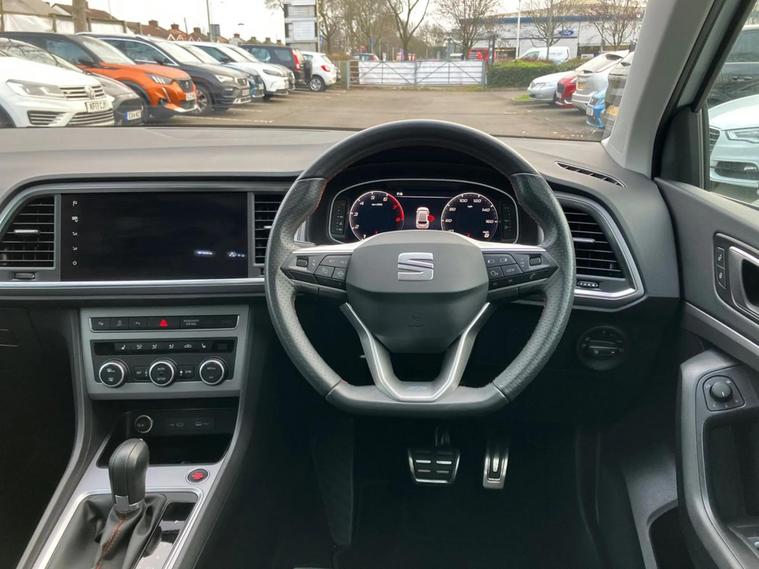 This 2024 SEAT Ateca TSI EVO FR Sport offers excellent peace of mind with its MOT valid until March 2027. This stylish SUV is equipped with a responsive 1.5 litre petrol engine, meeting Euro 6 emission standards. Inside, you'll find comfort and convenience with heated front seats and dual zone climate control, ensuring a pleasant journey for everyone. The FR Sport trim also includes a wireless phone charger and keyless entry for added ease. Experience impressive performance with the Ateca's ability to accelerate from 0 to 62 miles per hour in just 9.0 seconds, a figure that demonstrates its capability compared to other vehicles in its class. Furthermore, the generous boot space provides ample room for all your luggage, shopping, or sports equipment, making this SEAT Ateca a practical and versatile choice for everyday life and adventures.