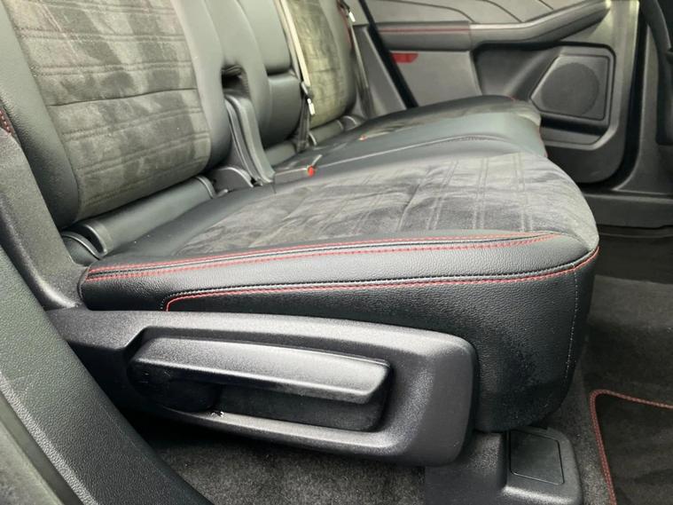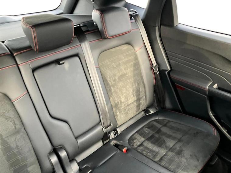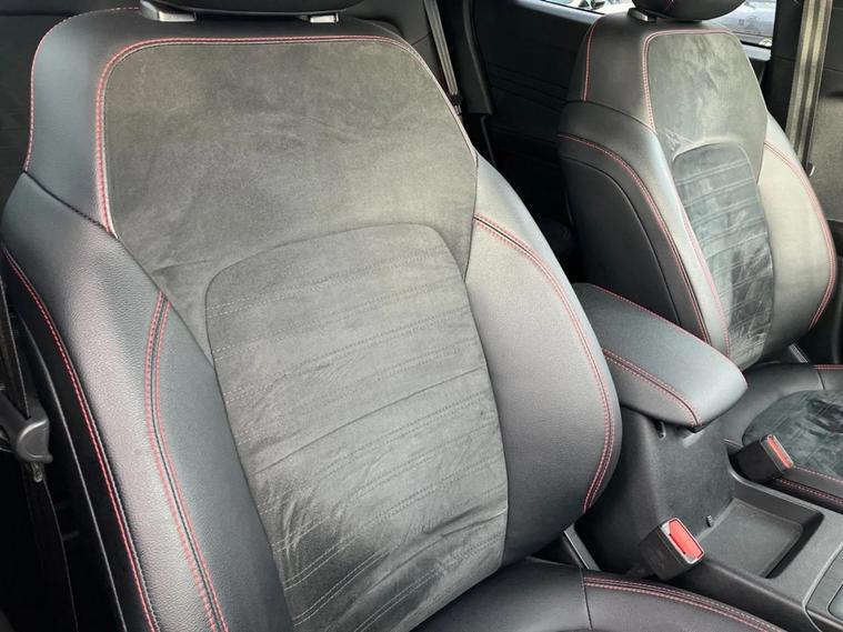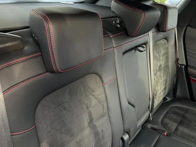 - Partial premium touch sensico leather upholstery with black cloth inserts and red stitching