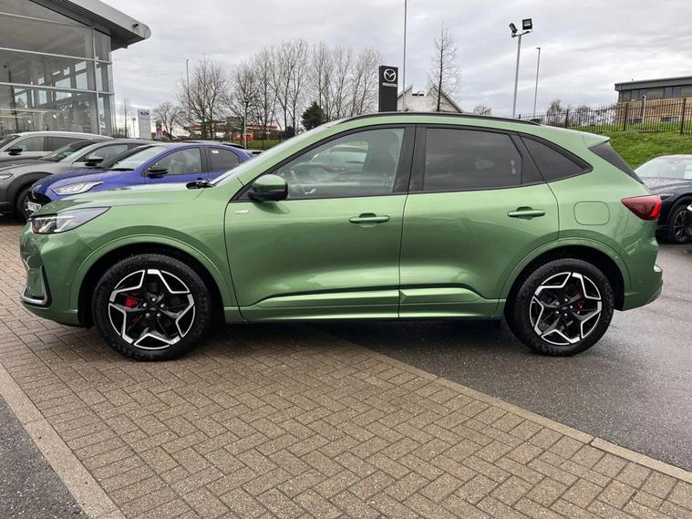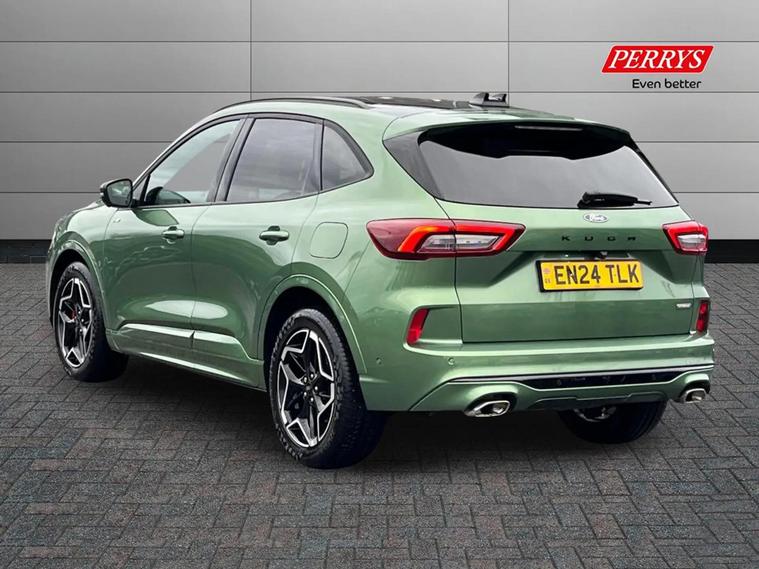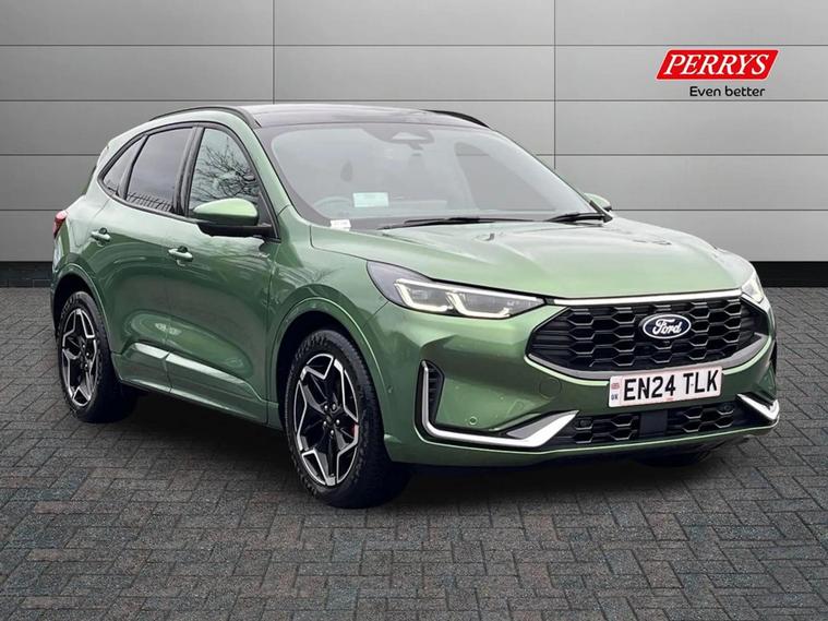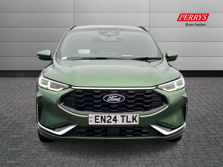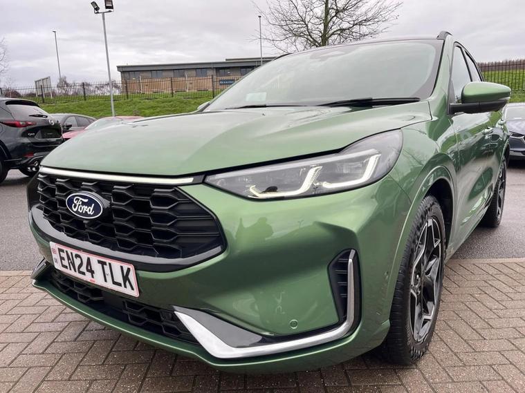 TECHNOLOGY PACK + MINI SPARE WHEEL + HEATED STEERING WHEEL + HEATED FRONT AND REAR SEATS + PANORAMIC SUN ROOF + 180bhp FHEV FULL HYBRID + FORD WARRANTY ++ This stunning 180bhp ST-Line X full hybrid has been supplied by Ford Motor Company and is an ex Ford management car. It has covered only 7k miles and as you would expect, is in excellent condition inside and out. It comes with a huge list of features, Ford warranty, 2 keys, and this car also factory options fitted including the Technology Pack (Glare-Free Dynamic Matrix LED Headlamps, Coast-to-coast front light bar, Heads Up Display), and a Mini Spare Wheel. Service intervals are 2yrs/18k miles, so the first service is not due until July 2026 or 18k miles, whichever comes first. ++ Self-Charging Hybrid (FHEV) vehicles have two sources of power. They can automatically switch between conventional mode, pure electric mode (for short distances), or use both to power the vehicle as needed. Kuga FHEV has a battery capacity of 1.1kW which allows short term electric propulsion, a great combination between power and fuel efficiency, whilst reducing the CO2 footprint compared to a conventional engine. There's no need to plug in your vehicle for charging. Hybrid vehicles can recharge the battery in two ways: 1) regenerative braking, 2) Conventional engine. The conventional engine powers the generator which transforms mechanical energy into electrical energy to charge the battery. It also uses regenerative braking t...