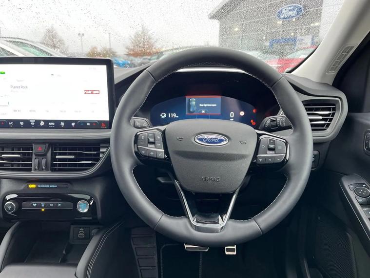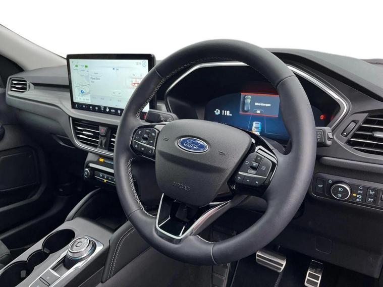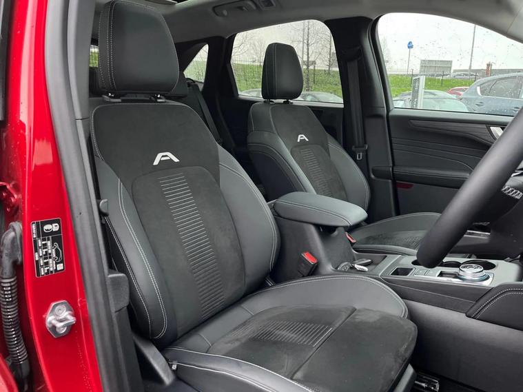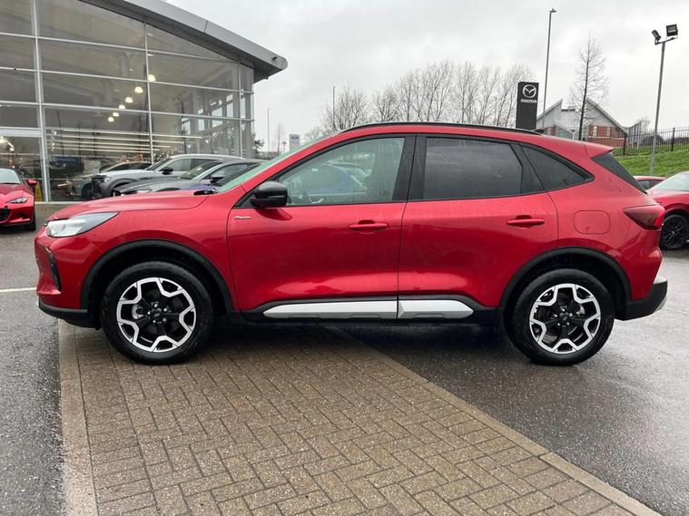 PANORAMIC SUN ROOF + WINTER PACK - HEATED STEERING WHEEL - HEATED FRONT AND REAR SEATS + MINI SPARE WHEEL + 180bhp FHEV FULL HYBRID + FORD WARRANTY ++ This stunning 180bhp Active full hybrid has been supplied by Ford Motor Company and is an ex Ford management car. It has covered only 2k miles and as you would expect, is in excellent condition inside and out. It comes with a huge list of features, Ford warranty, 2 keys, and this car also factory options fitted including a Panoramic Sun Roof, the Winter Pack (Heated Steering Wheel and Heated Front and Rear Seats), and a Mini Spare Wheel. It has been serviced here at Perrys Mansfield in December 2025 @ 2k miles, and with 2yr/18k intervals, the next service will not be due until December 2027 or 19k miles, whichever comes first ++ Self-Charging Hybrid (FHEV) vehicles have two sources of power. They can automatically switch between conventional mode, pure electric mode (for short distances), or use both to power the vehicle as needed. Kuga FHEV has a battery capacity of 1.1kW which allows short term electric propulsion, a great combination between power and fuel efficiency, whilst reducing the CO2 footprint compared to a conventional engine. There's no need to plug in your vehicle for charging. Hybrid vehicles can recharge the battery in two ways: 1) regenerative braking, 2) Conventional engine. The conventional engine powers the generator which transforms mechanical energy into electrical energy to charge the...