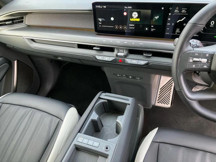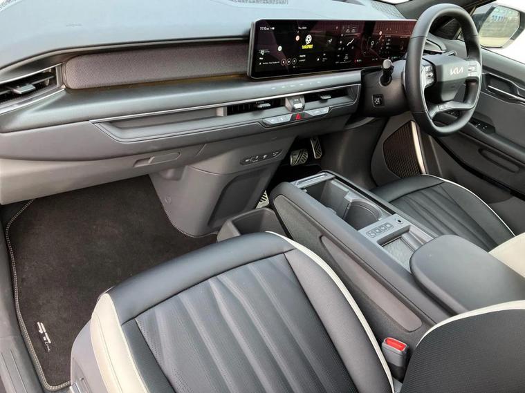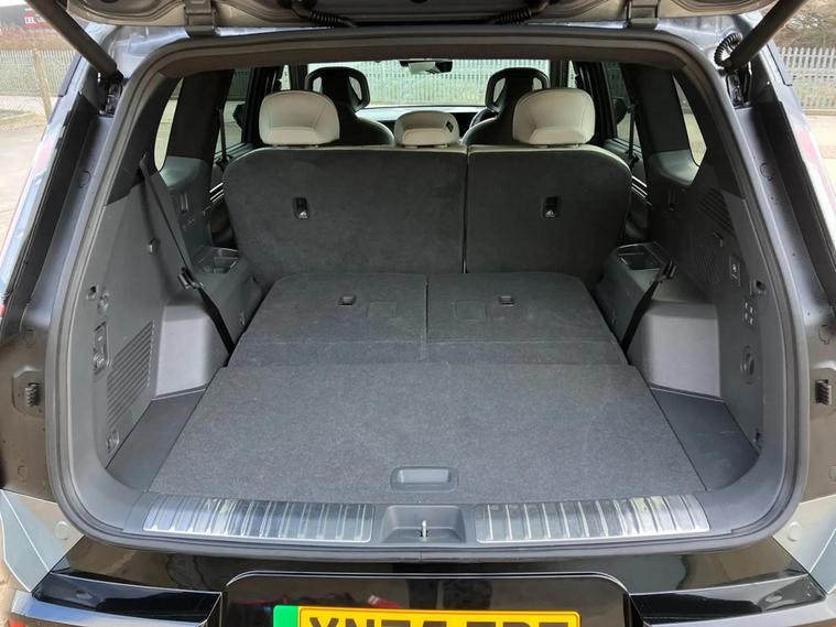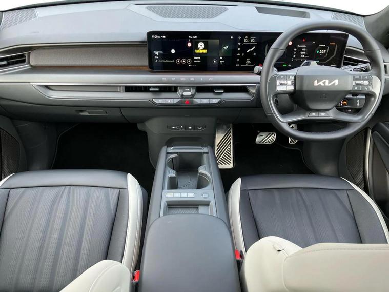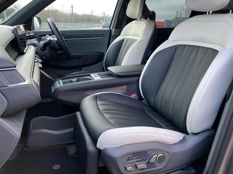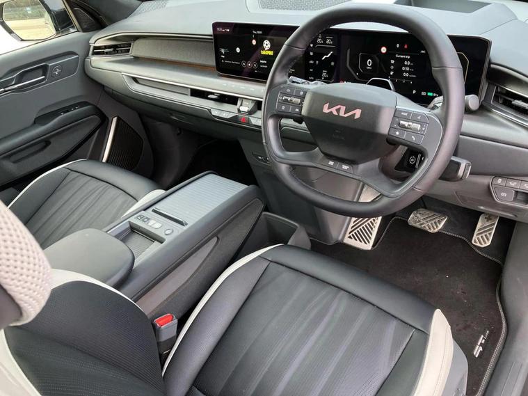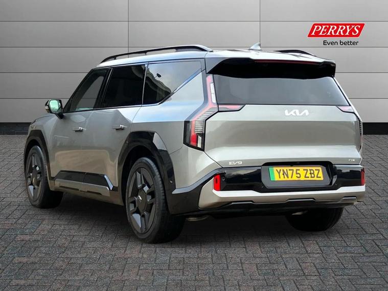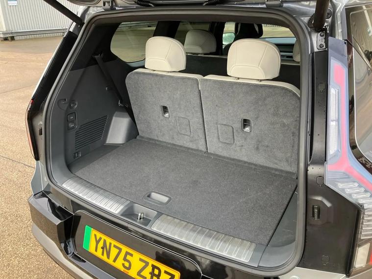 This 2025 Kia EV9 GT-Line S offers exceptional peace of mind with its MOT valid until September 2028. This electric, four wheel drive SUV is a 7 seater, perfect for families or those needing extra space. It boasts a substantial 100 kWh battery, providing a maximum range of 313 miles when new. For convenience, it features a heated steering wheel, a fixed second row sunroof with an electric blind, and a wireless mobile phone charger. Navigating tight spots is made easier with an electronic rear view mirror that includes a full display and a 360 degree around view monitor. The Kia EV9 GT-Line S delivers impressive performance, accelerating from 0 to 62 miles per hour in just 5.3 seconds, demonstrating its capability compared to other vehicles in its class. Its fastest public charging time allows for an 80% charge from empty in only 27 minutes, significantly quicker than the 45 hours and 5 minutes required for a full charge at home using a 7kW charger. Furthermore, this capable SUV has a towing weight of 2500 kg, making it a versatile choice for various needs.