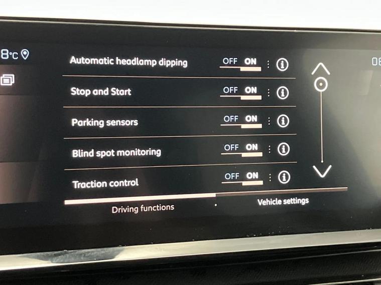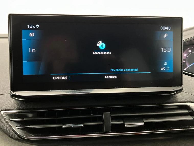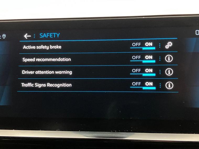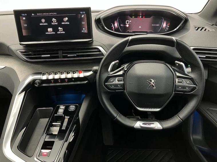 - Peugeot i-cockpit with configurable 12.3 headup digital instrumental panel and compact sports steering wheel