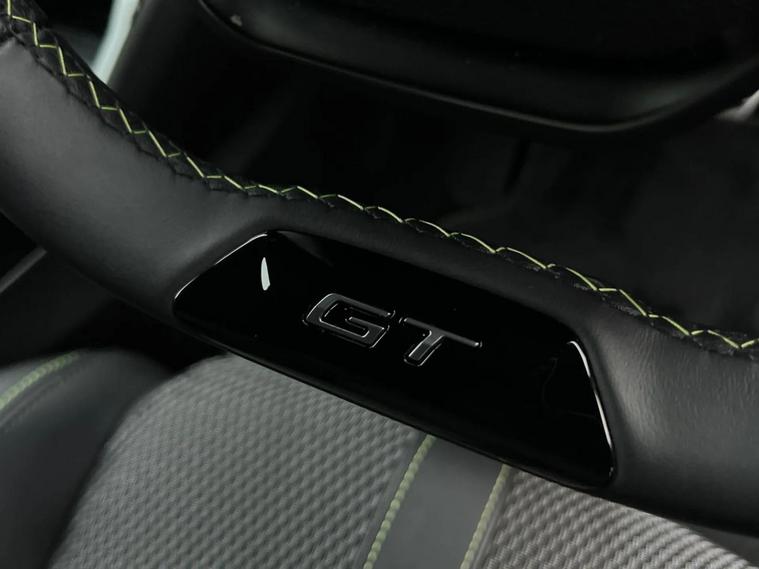 - Multi function full grain perforated leather steering wheel with adamite green stitch detail and GT emblem