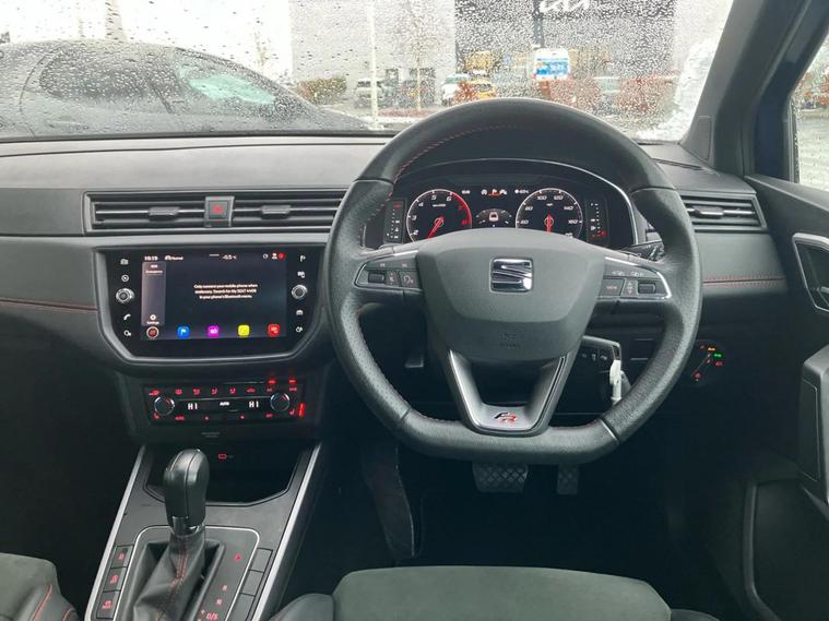- Perforated flat bottomed leather steering wheel/gear knob/handbrake with red stitching and FR logo