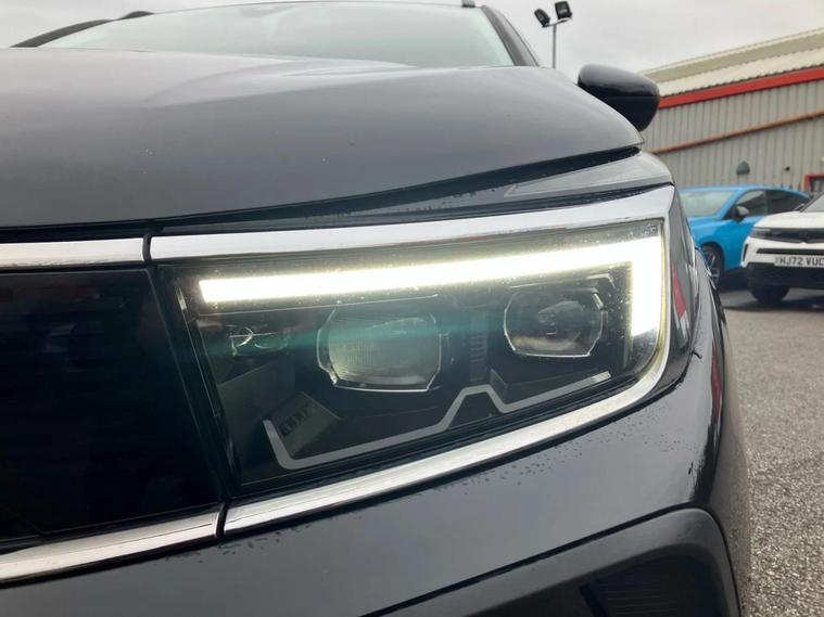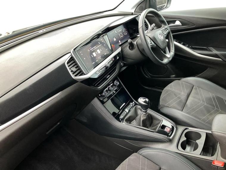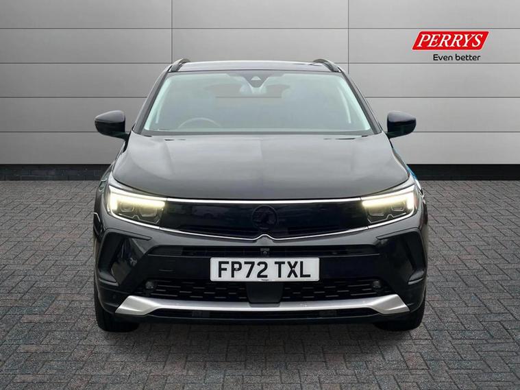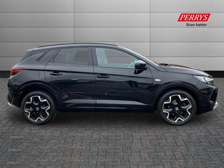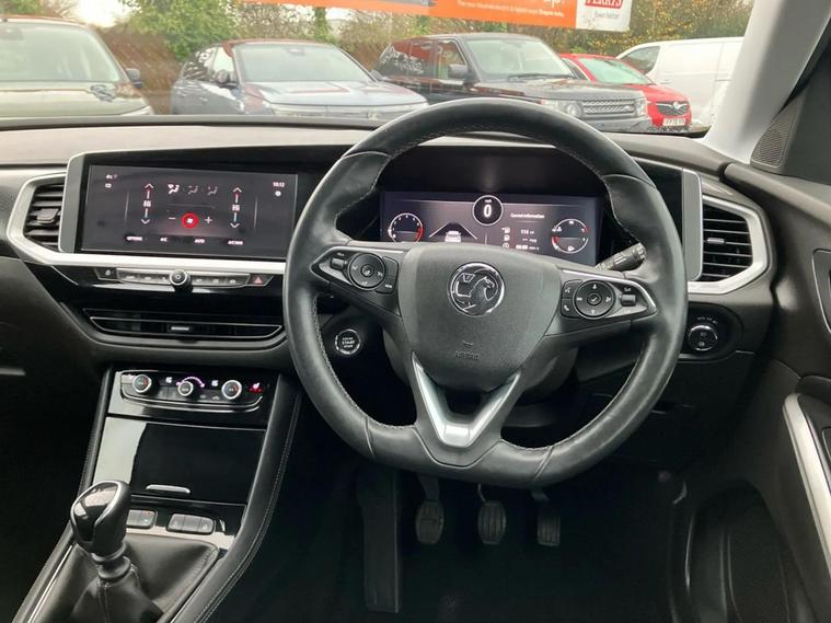 This 2022 Vauxhall Grandland Turbo Ultimate boasts an MOT valid until November 2026, offering you peace of mind for years to come. This stylish SUV is equipped with a responsive 1.2 litre petrol engine and meets Euro 6 emission standards. Experience effortless convenience with keyless entry and start, allowing you to unlock and ignite the engine without reaching for your keys. Automatic lighting control ensures your headlights illuminate automatically when needed, while the side blind spot alert system provides an extra layer of safety by warning you of vehicles in your blind spots. The Vauxhall Grandland Turbo Ultimate is designed to impress with its impressive fuel economy, achieving up to 46 miles per gallon, which is better than many similar vehicles. It also sits in a low insurance group, making it an economical choice for everyday driving. You'll appreciate the generous boot space, perfect for luggage or shopping, and its low CO2 emissions further highlight its efficiency compared to other cars in its class.