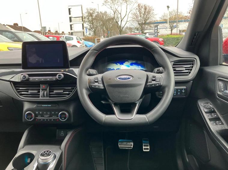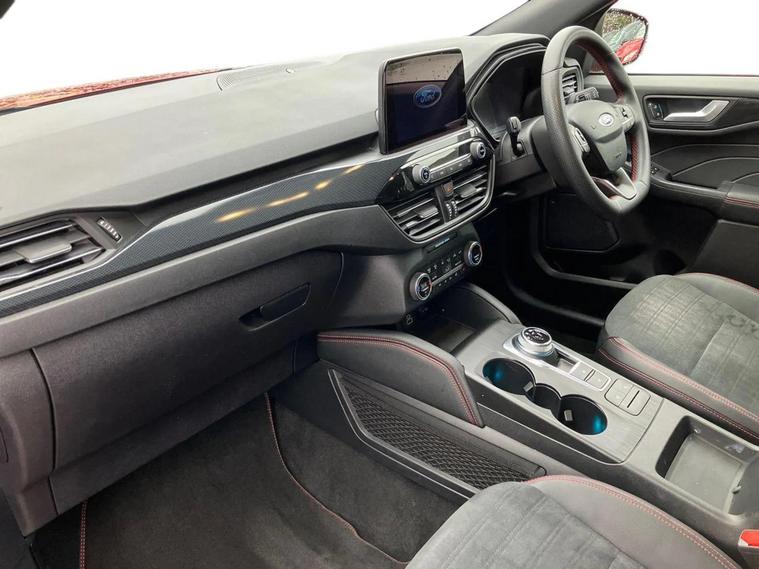 This 2022 Ford Kuga ST Line X Edition is one of the stylish SUV's on the market and is equipped with a responsive 2.5 litre petrol hybrid engine, meeting Euro 6 emission standards. Inside, you'll find a wealth of comfort and convenience features, including front and rear parking sensors with parking assistance, a heated steering wheel, and heated rear seats for those colder journeys. Enjoy the open air with the power opening panoramic roof, and maneuver with ease thanks to the rear view camera.