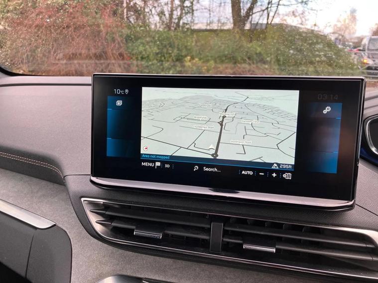 - Peugeot i-cockpit with configurable 12.3 headup digital instrumental panel and compact sports steering wheel