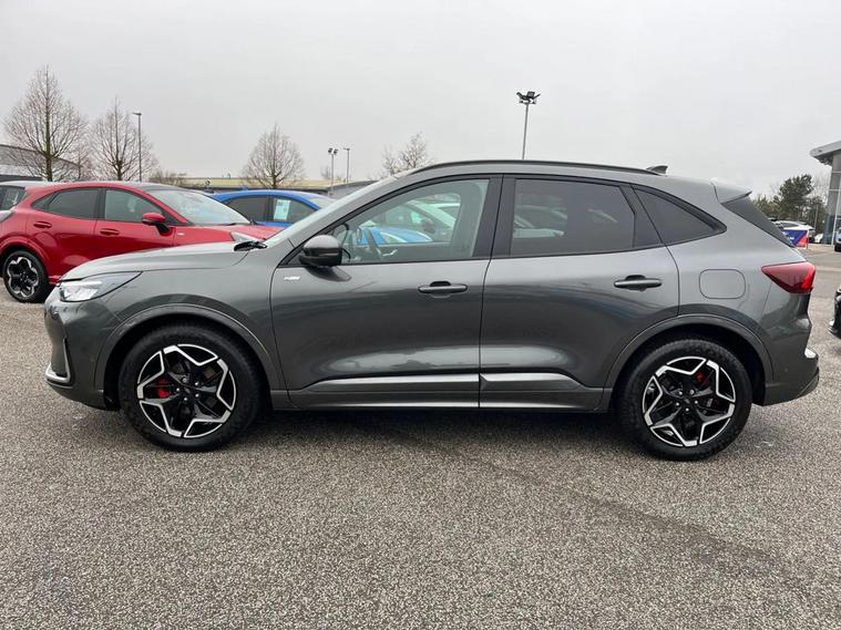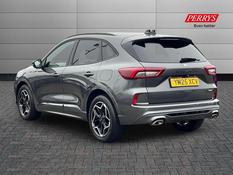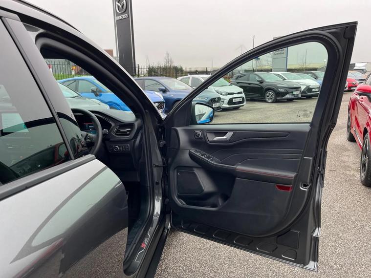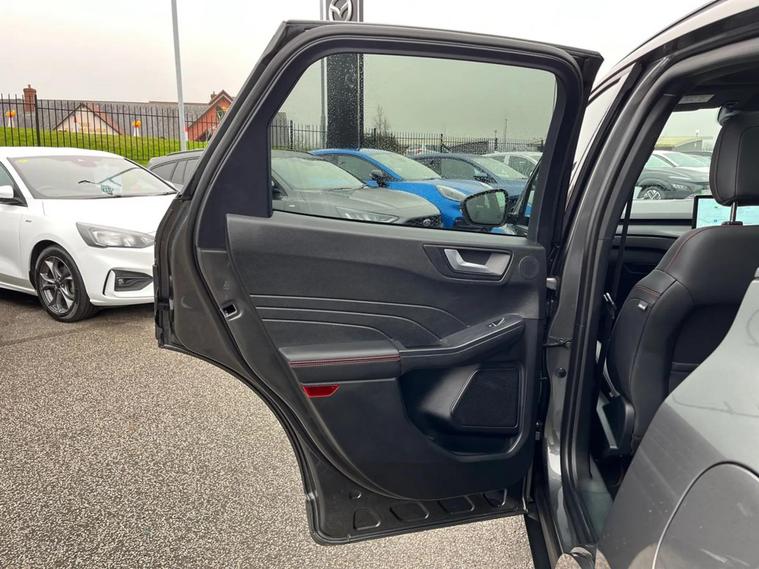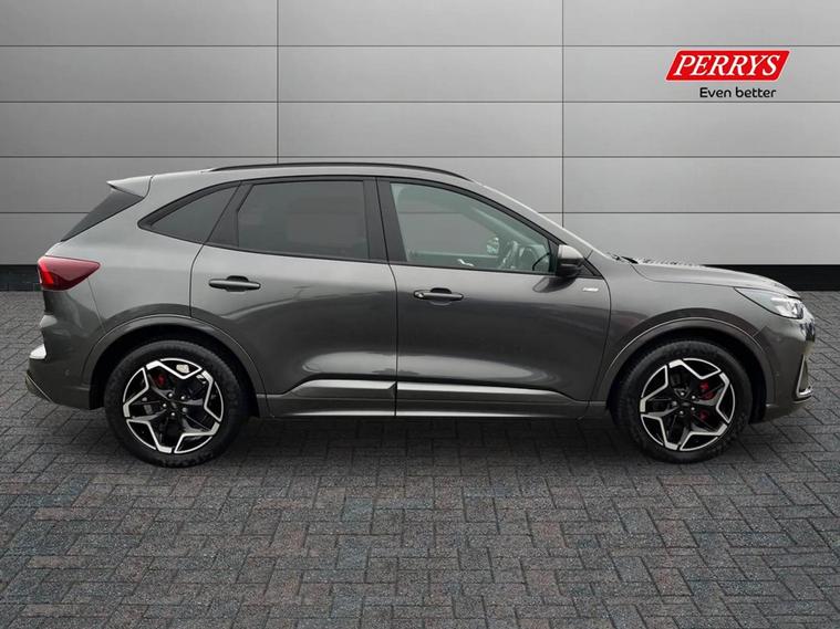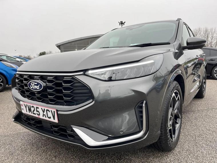 EX PERRYS COMPANY CAR + 190bhp FHEV FULL HYBRID + PANORAMIC SUN ROOF + HEATED STEERING WHEEL + HEATED FRONT AND REAR SEATS ++ This stunning 190bhp ST-Line X FHEV full hybrid was one of our own company cars and has covered only 6k miles. As you would expect with one of our own cars, it is in exceptional condition inside and out. It comes with a huge list of features, Ford warranty, and 2 keys. Service intervals are 2yrs/18k miles, so the first service is not due until June 2027 or 18k miles, whichever comes first ++ ++ Self-Charging Hybrid (FHEV) vehicles have two sources of power. They can automatically switch between conventional mode, pure electric mode (for short distances), or use both to power the vehicle as needed. Kuga FHEV has a battery capacity of 1.1kW which allows short term electric propulsion, a great combination between power and fuel efficiency, whilst reducing the CO2 footprint compared to a conventional engine. There?s no need to plug in your vehicle for charging. Hybrid vehicles can recharge the battery in two ways: 1) regenerative braking, 2) Conventional engine. The conventional engine powers the generator which transforms mechanical energy into electrical energy to charge the battery. It also uses regenerative braking to charge the battery. While braking, the motor is still spinning even though the car is trying to slow down. Regenerative braking captures this typically wasted energy to create electricity, which charges the battery. +++