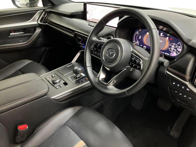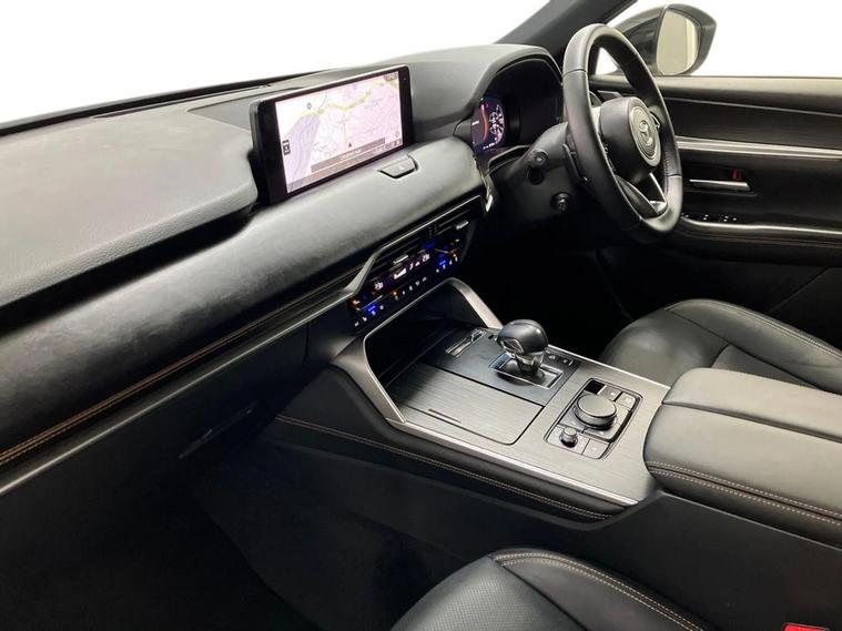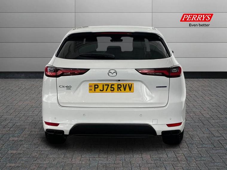 This 2025 Mazda CX-60 e-SKYACTIV Homura Plus boasts an MOT valid until November 2028, offering excellent peace of mind. This Four Wheel Drive model features a 2.5L Petrol Plug-in Hybrid engine, meeting Euro 6 emission standards. The Homura Plus trim includes Smart Keyless Entry, the Mazda Driver Personalisation System with seat memory, and an Electric Panoramic Sunroof for an open and airy cabin. Enjoy the comfort of Heated Outer Rear Seats with a 3-stage setting and seamless connectivity with Integrated Bluetooth. Experience impressive performance with the CX-60's ability to accelerate from 0-62mph in just 5.8 seconds, a highlight that sets it apart from many other vehicles in its class. This capability, combined with a substantial towing weight of 2500 kg and generous boot space, makes the Mazda CX-60 a versatile and capable choice for both daily driving and more demanding tasks.