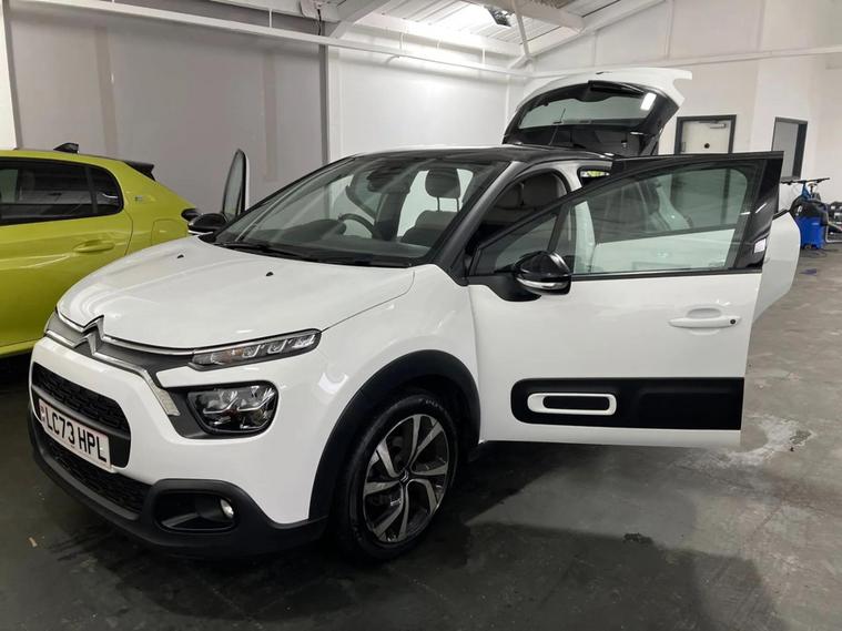 This 2023 Citroen C3 Shine Plus offers excellent peace of mind with its MOT valid until September 2026. This stylish hatchback is equipped with a responsive 1.2 litre petrol engine and meets Euro 6 emissions standards. The Shine Plus trim level ensures you benefit from a range of desirable features, including LED headlights for enhanced visibility, automatic air conditioning for a comfortable cabin environment, and rear parking sensors complemented by a reversing camera to make manoeuvring effortless. Experience a smooth and engaging drive with the Citroen C3 Shine Plus, capable of accelerating from 0 to 62 miles per hour in just 10.1 seconds. These performance figures, combined with its comprehensive parking assistance systems and advanced lighting, demonstrate a superior driving experience compared to other vehicles in its class. This well appointed C3 is ready to provide a comfortable and convenient journey.