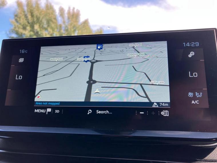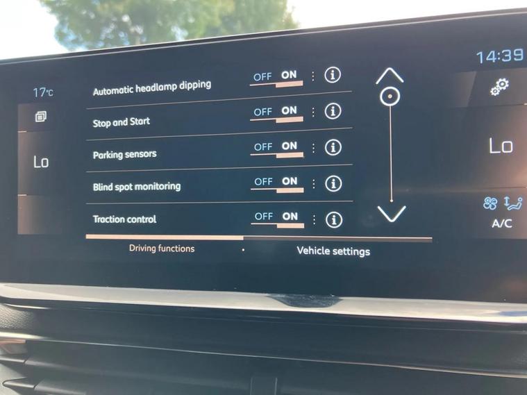 - Peugeot i-cockpit with configurable 12.3 headup digital instrumental panel and compact sports steering wheel