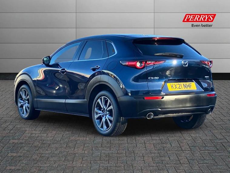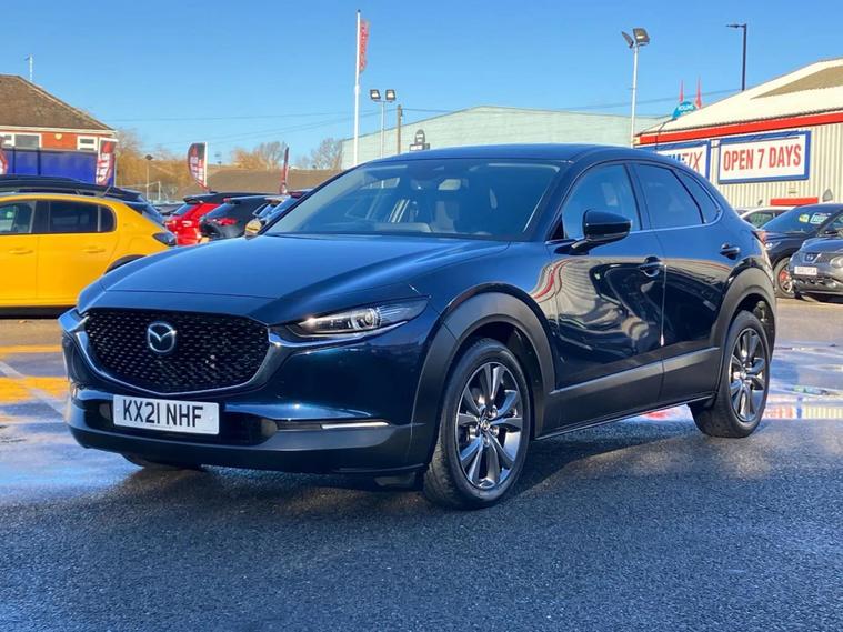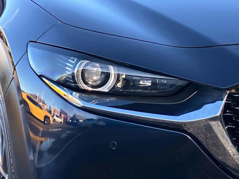 This 2021 Mazda CX-30 e-SKYACTIV X Sport Lux boasts exceptionally low mileage for its age, having covered just 23090 miles. This Euro 6 compliant 2.0L petrol model comes with an MOT valid until January 2026, offering peace of mind. The Sport Lux trim level is well equipped, featuring Smart Keyless Entry for effortless access, front and rear parking sensors complemented by a reversing camera for confident manoeuvring, and Blind Spot Monitoring with Rear Cross Traffic Alert to enhance safety during your journeys. Experience impressive efficiency with a highlighted fuel economy of 50 mpg, alongside low CO2 emissions and a low insurance group, indicating that this CX-30 is more economical to run than many similar vehicles. Its performance is also noteworthy, achieving 0-62mph in just 8.3 seconds, demonstrating a responsive driving experience.