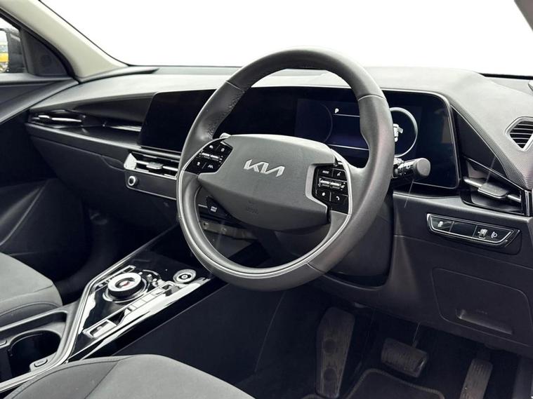 With only one owner from new, this 2023 Kia Niro 2 offers exceptional provenance. This electric vehicle boasts a substantial 68 kWh battery, providing a maximum range of 285 miles when new, ensuring you can travel further on a single charge. Its MOT is valid until August 2026, offering peace of mind for the coming years. The Niro 2 also comes equipped with rear parking sensors for easier manoeuvring and Bluetooth with music streaming, allowing for seamless connectivity on every journey. With a low mileage of just 18569 miles for its age, this Kia Niro presents a compelling proposition. The electric powertrain of this Kia Niro is a significant highlight, offering an environmentally friendly and cost effective driving experience. The impressive 285 mile maximum range at new sets it apart from many other electric vehicles, meaning fewer stops and more miles. When you do need to recharge, a full charge at home using a 7kW charger takes approximately 9 hours and 25 minutes, while rapid public charging can take you from empty to 80% in just 43 minutes. These charging capabilities demonstrate the Niro's practicality for both daily commutes and longer trips, making it a superior choice for those seeking an efficient and capable electric car.