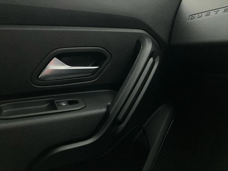 - Black/satin chrome tailgate trim with Duster inscription in black background and lettering