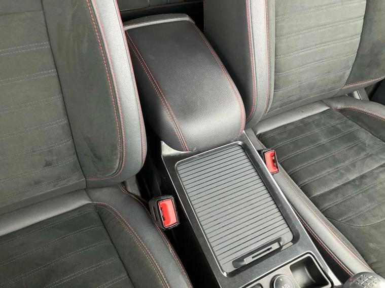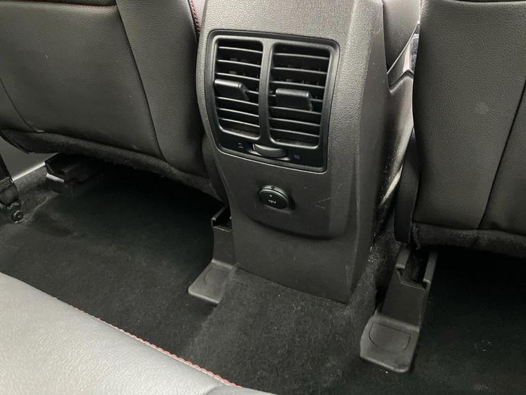 - Leather steering wheel with red stitching and gear knob