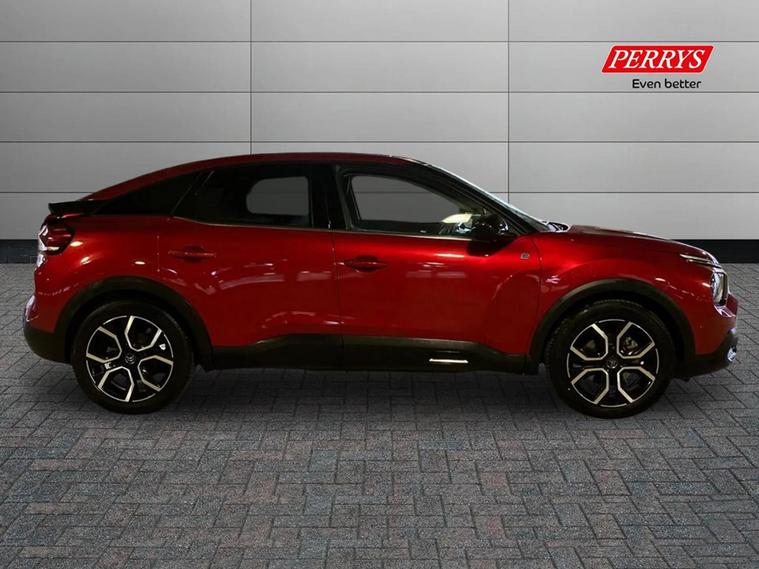 This 2022 Citroen e C4 Shine Plus presents an exceptional opportunity as an electric vehicle, it offers a substantial battery total capacity of 50 kWh. The Shine Plus trim level comes equipped with a host of desirable features designed to enhance your driving experience. These include keyless entry and start for effortless access, active blind spot detection for added safety on the road, and a heated steering wheel for comfort during colder journeys. You'll also appreciate the top rear vision reversing camera, making parking maneuvers simpler, and electrically heated front seats for immediate warmth. Furthermore, the e C4 offers generous boot space, making it a practical choice for everyday use and longer trips alike, setting it apart from many other vehicles in its class.