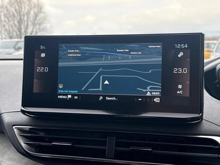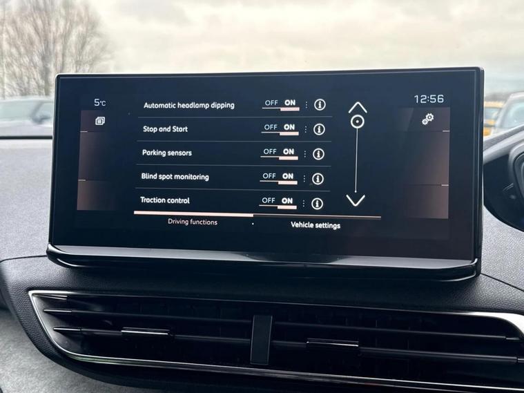 - Peugeot i-cockpit with configurable 12.3 headup digital instrumental panel and compact sports steering wheel