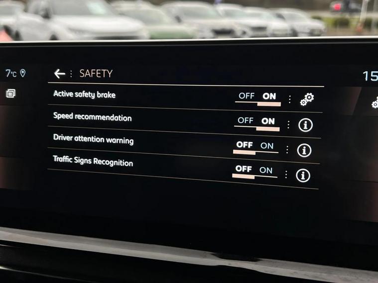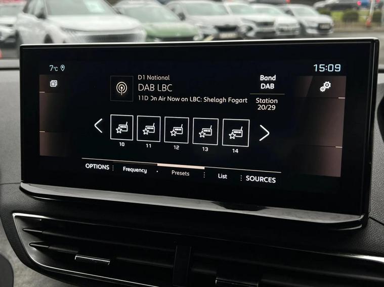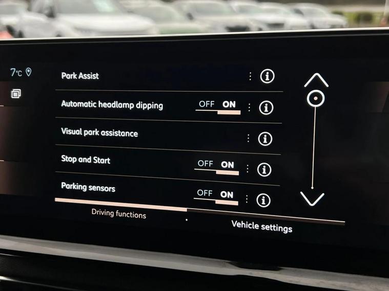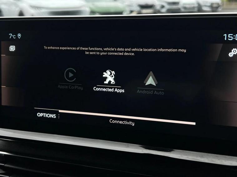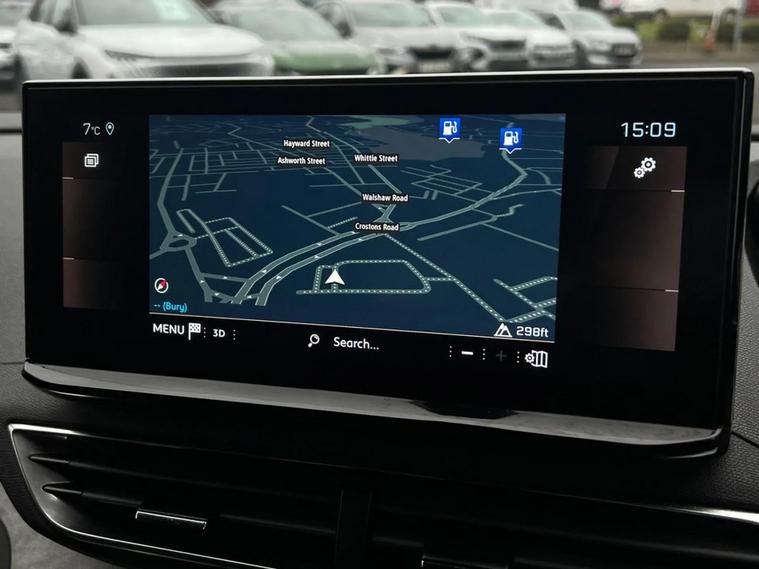 - Peugeot i-cockpit with configurable 12.3 headup digital instrumental panel and compact sports steering wheel