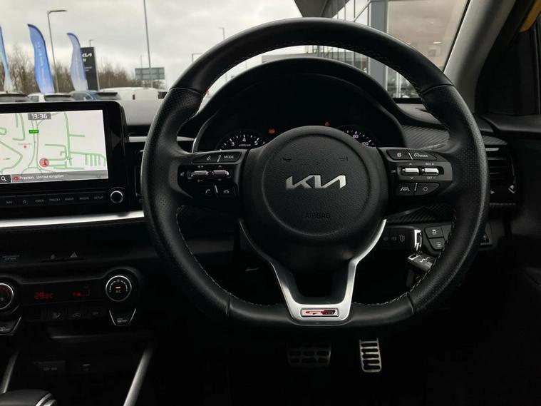 This 2022 Kia Stonic GT Line is a superb example, having been owned by just one person since new. This stylish GT Line variant boasts a turbo petrol engine, meeting Euro 6 emission standards. For your peace of mind, the Kia warranty is valid until September 2029. Inside, you'll find a host of convenient features including a reversing camera system with rear parking assistance, automatic air conditioning with climate control, and Bluetooth connectivity for seamless music streaming. The striking LED Projection Headlights ensure excellent visibility on every journey. This Stonic stands out with its low CO2 emissions, making it an environmentally conscious choice. Furthermore, its position in a low insurance group means that running costs are kept to a minimum, offering you excellent value for money compared to similar vehicles. This combination of efficiency, affordability, and advanced features makes this Stonic a truly compelling option.