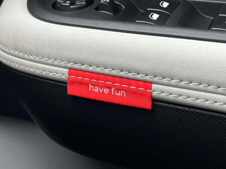 - Padded fabric armrests in front and rear doors with Happy Tags labels