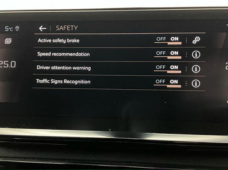 - Peugeot i-cockpit with configurable 12.3 headup digital instrumental panel and compact sports steering wheel