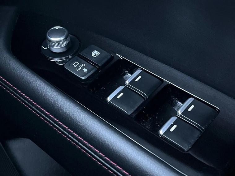 - Red stitching and accents on door trim