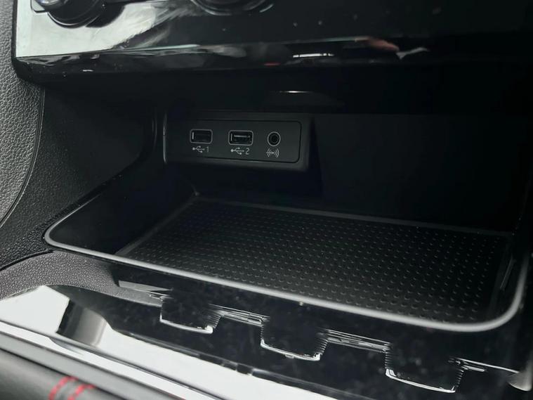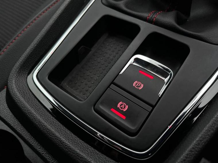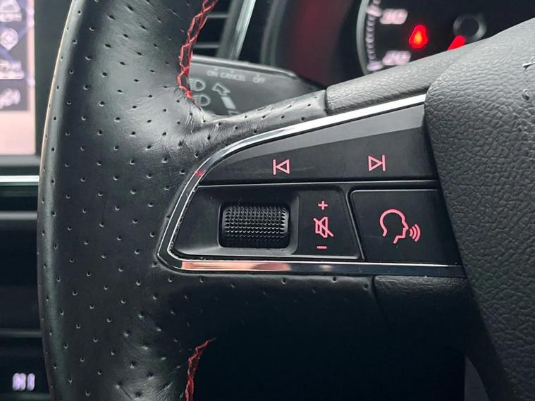 - Flat bottomed perforated leather steering wheel with red stitching and FR logo and leather gear knob