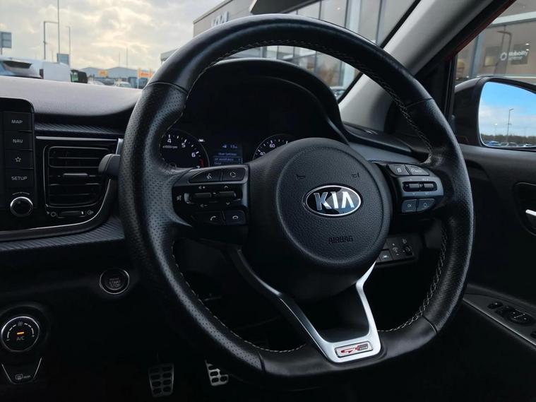 With only one owner from new and a remarkably low mileage of 32317 miles for its 2019 registration, this Kia Rio T-GDi GT-Line S presents a superb example of a well cared for vehicle. Powered by an efficient 1.0 litre petrol turbo engine and meeting Euro 6 emission standards, this car is ready for many more miles. Kia's outstanding 7 year, 100, 000 mile warranty until 31st May 2026, offers peace of mind for the new owner. Inside, you'll find comfort features such as a heated steering wheel, automatic air conditioning, and heated front seats, ensuring a pleasant driving experience in all conditions. This particular Rio GT-Line S stands out from others thanks to its impressive acceleration, achieving 0-60mph in just 9.8 seconds, demonstrating a lively performance. Furthermore, its low insurance group rating indicates that running costs are likely to be more affordable compared to similar vehicles. The generous boot space also means this car is highly practical for everyday use, easily accommodating shopping or luggage, making it a versatile choice for various needs.