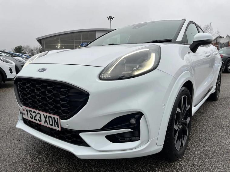 1 LOCAL PRIVATE OWNER + FULL PERRYS SERVICE HISTORY + WINTER PACK + PARKING PACK + VERY LOW MILES ++ This 125bhp ST-Line X hybrid was supplied brand new by ourselves and has just been taken back in part exchange. 1 local private owner, it has covered only 8k miles and is in excellent condition inside and out. The car has been exceptionally well maintained and comes with a full Perrys service history, Ford warranty, and 2 keys. This car also has the Winter Pack (Heated Steering Wheel and Heated Front Seats) and the Parking Pack (Active Park Assist, Front Parking Sensors, and a Rear View Camera). Serviced here at Perrys in May 2025 @ 6k miles, and with 2yr/18k intervals, the next service will not be due until May 2027 or 24k miles, whichever comes first ++ The Pumas advanced EcoBoost Hybrid system is designed to minimise emissions and support the petrol engine with extra power when needed. And self-charging technology means the hybrid battery recharges as you drive. The EcoBoost Hybrid engine uses a small electric motor with a 48-volt battery to improve efficiency. Instead of driving solely on electric power, the electric motor provides torque assistance to the petrol engine when needed. It also uses regenerative braking technology, which charges the mild hybrid's battery by capturing energy that is usually lost when you slow down. This helps increase your fuel economy and reduce emissions. ++