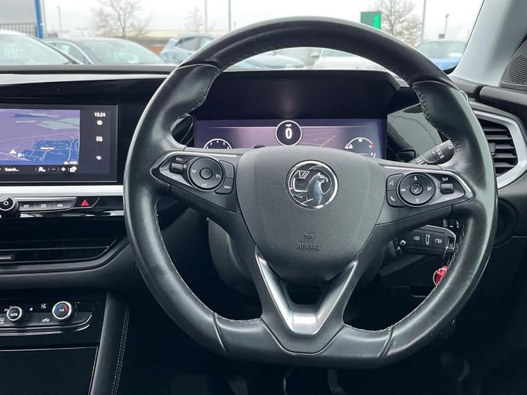 - 3 spoke leather covered steering wheel with satin chrome effect bezel