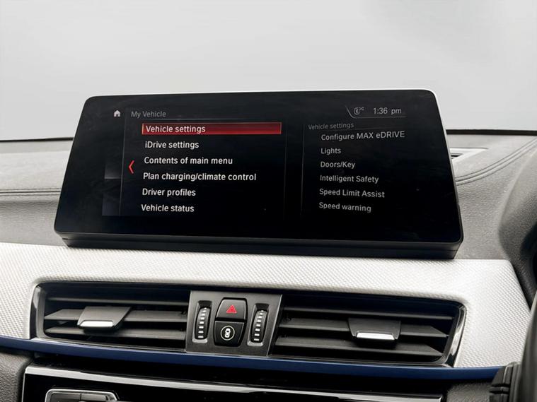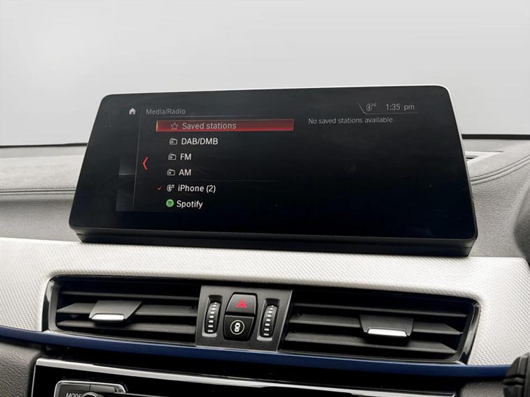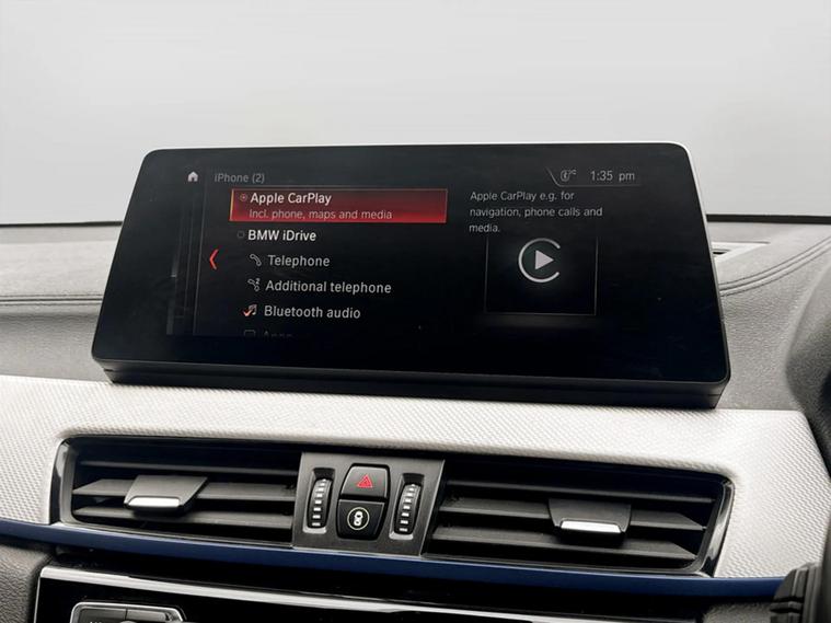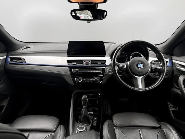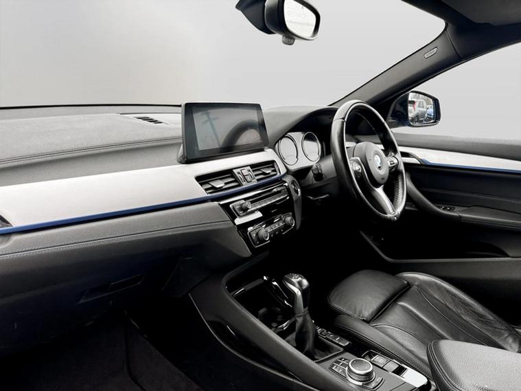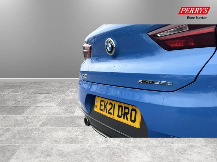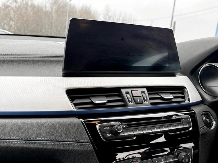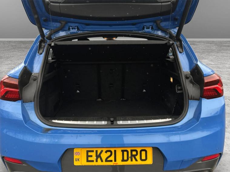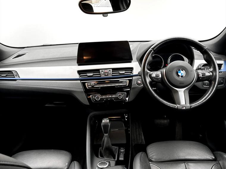 Discover this 2021 BMW X2 25e M Sport, a sophisticated plug in hybrid that offers an engaging driving experience. This four wheel drive model boasts a 1.5 litre petrol plug in hybrid engine and meets Euro 6 emissions standards. Inside, you will find a luxurious Black interior with striking blue stitching on the perforated Dakota leather upholstery. Comfort is paramount, with both driver and front passenger benefiting from lumbar support, and the driver's seat featuring memory settings. This X2 M Sport comes equipped with a comprehensive Tech Pack, enhancing connectivity and convenience with Bluetooth, a Head Up Display, and wireless phone charging. The Comfort Pack ensures a pleasant journey with a heated steering wheel, while the Driver Pack includes front and rear parking sensors to aid manoeuvrability. These carefully selected features demonstrate how this BMW X2 is designed to offer a superior level of refinement and technology compared to other vehicles in its class.