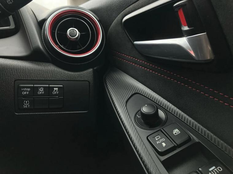 - Black soft touch dashboard panel with red stitching colour coordination