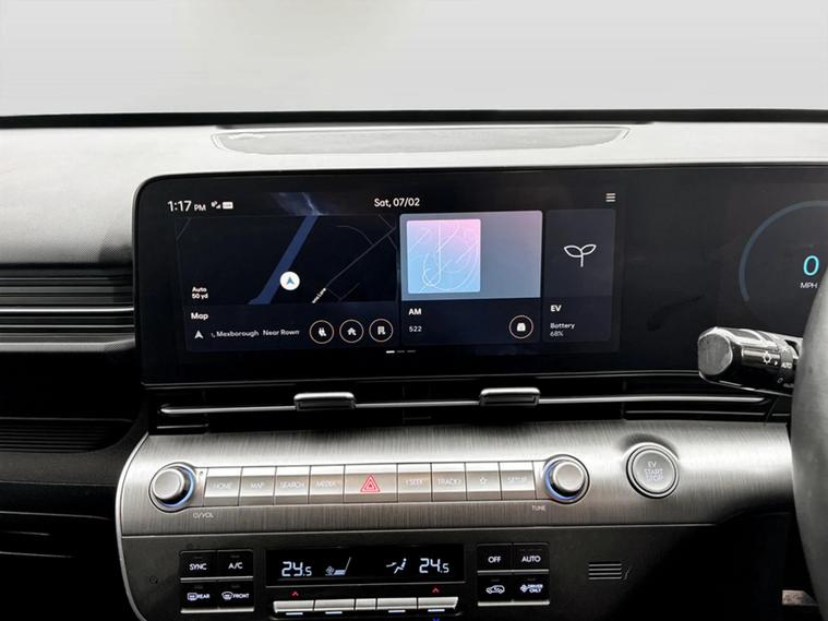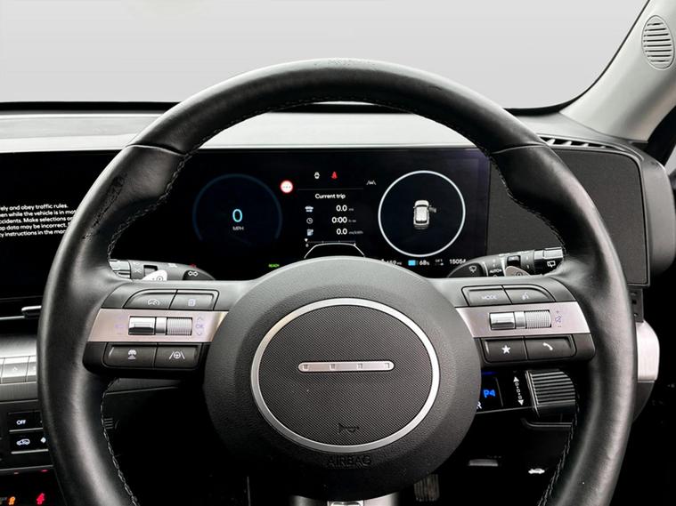 This 2023 Hyundai KONA Advance Electric is a superb example, having had only one owner since new and boasting the remainder of Hyundai's 5 year car warranty and 8 year High voltage battery warranty from the date of first registration. This stylish electric SUV features a substantial 73 kWh battery, offering an impressive maximum range of 319 miles when new. For convenience, it can be fully charged at home using a 7kW charger in approximately 8 hours and 53 minutes, while rapid public charging can take the battery from empty to 80% in just 46 minutes. The KONA Advance also comes equipped with a Comfort Pack, which includes heated seats and a heated steering wheel, alongside wireless phone charging for seamless connectivity. The KONA Advance Electric stands out with its exceptional range of 319 miles, a key indicator of its superior capability compared to many other electric vehicles. Further enhancing your driving experience are automatic headlights that activate with a dusk sensor, ensuring optimal visibility. Stay connected and in control with Bluetooth connectivity featuring voice recognition, allowing for hands free calls and audio streaming. This well maintained, single owner vehicle offers a compelling blend of practicality, advanced technology, and impressive electric performance.