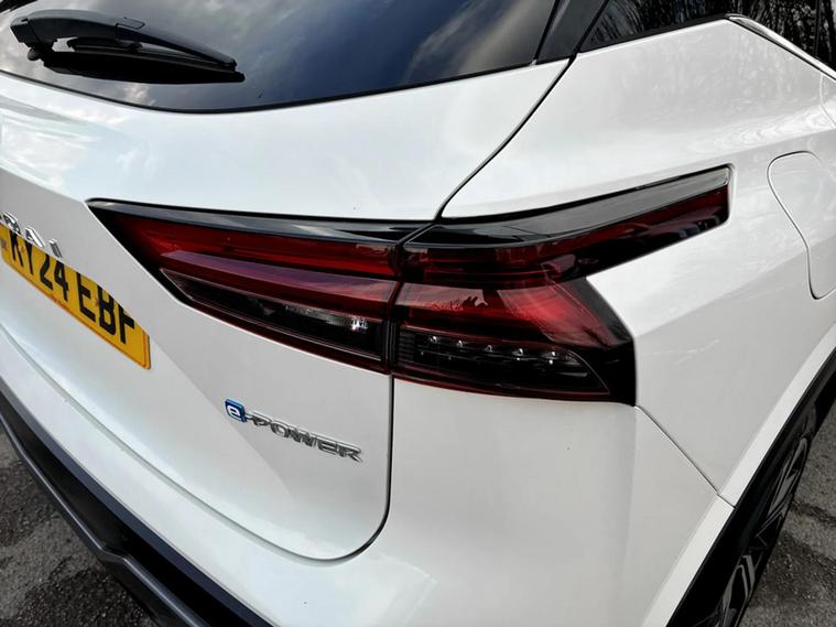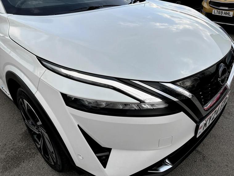 This 2024 Nissan Qashqai h e-POWER Tekna+ boasts exceptionally low mileage for its age. This Euro 6 compliant model features a 1.5L Petrol Hybrid engine and comes with an MOT valid until May 2027, offering peace of mind. The Tekna+ trim level ensures a premium experience, enhanced by notable features such as heated front seats and a heated steering wheel for ultimate comfort. Driving is made safer and more convenient with LED headlights featuring adaptive driving beam technology, alongside intelligent blind spot intervention and blind spot warning systems. Experience impressive efficiency with a highlighted great fuel economy, alongside low CO2 emissions, making this Qashqai an environmentally conscious choice. Its performance is equally compelling, with an acceleration of 0-62mph achieved in just 7.9 seconds. These highlights demonstrate how this Nissan Qashqai offers a superior driving experience compared to other vehicles in its class, combining advanced technology, comfort, and economical performance.